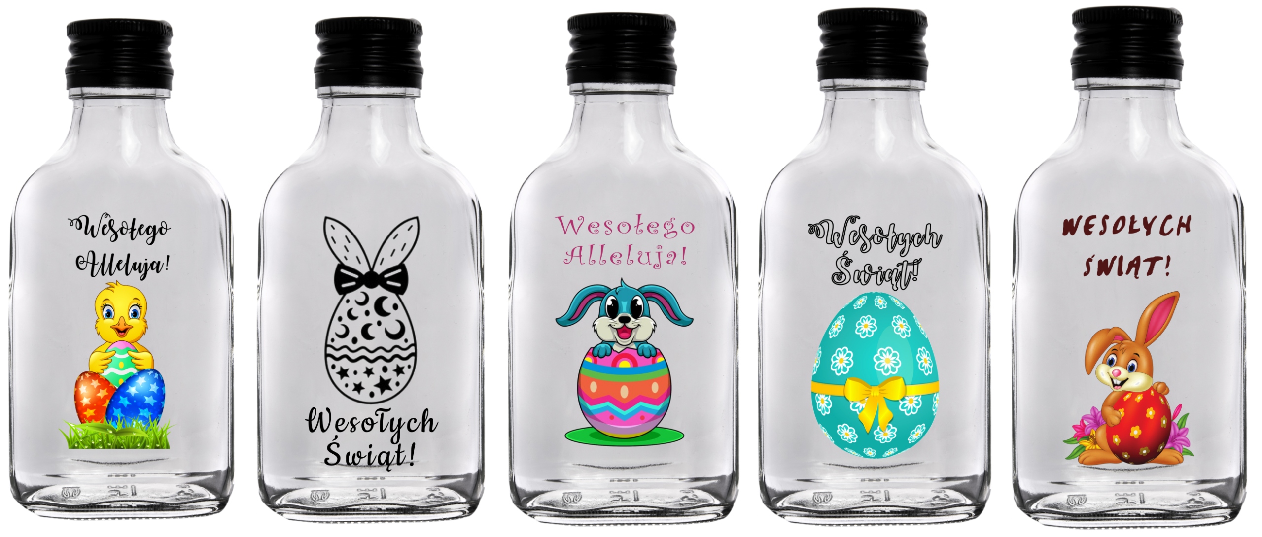 5 SZTUK RÓŻNYCH BUTELEK Z NADRUKIEM O POJEMNOŚCI 100ML WRAZ Z ZAKRĘTKĄ!