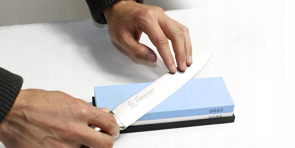 Prawidłowe prowadzenie noża na ostrzałce (ostrzem do przodu - jak do cięcia)