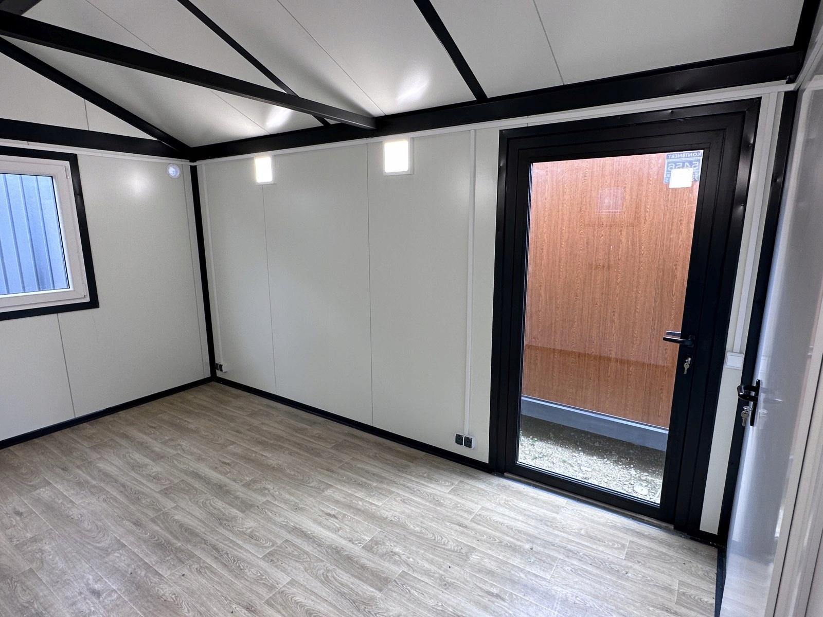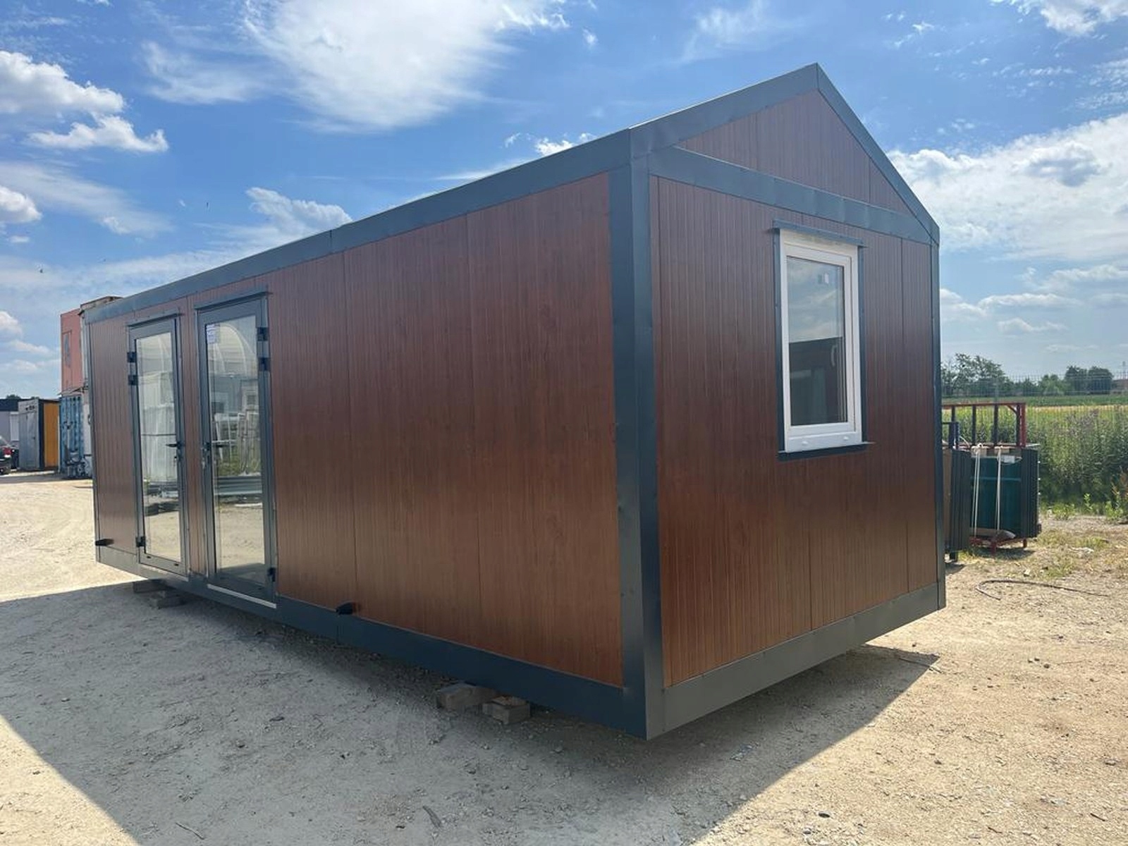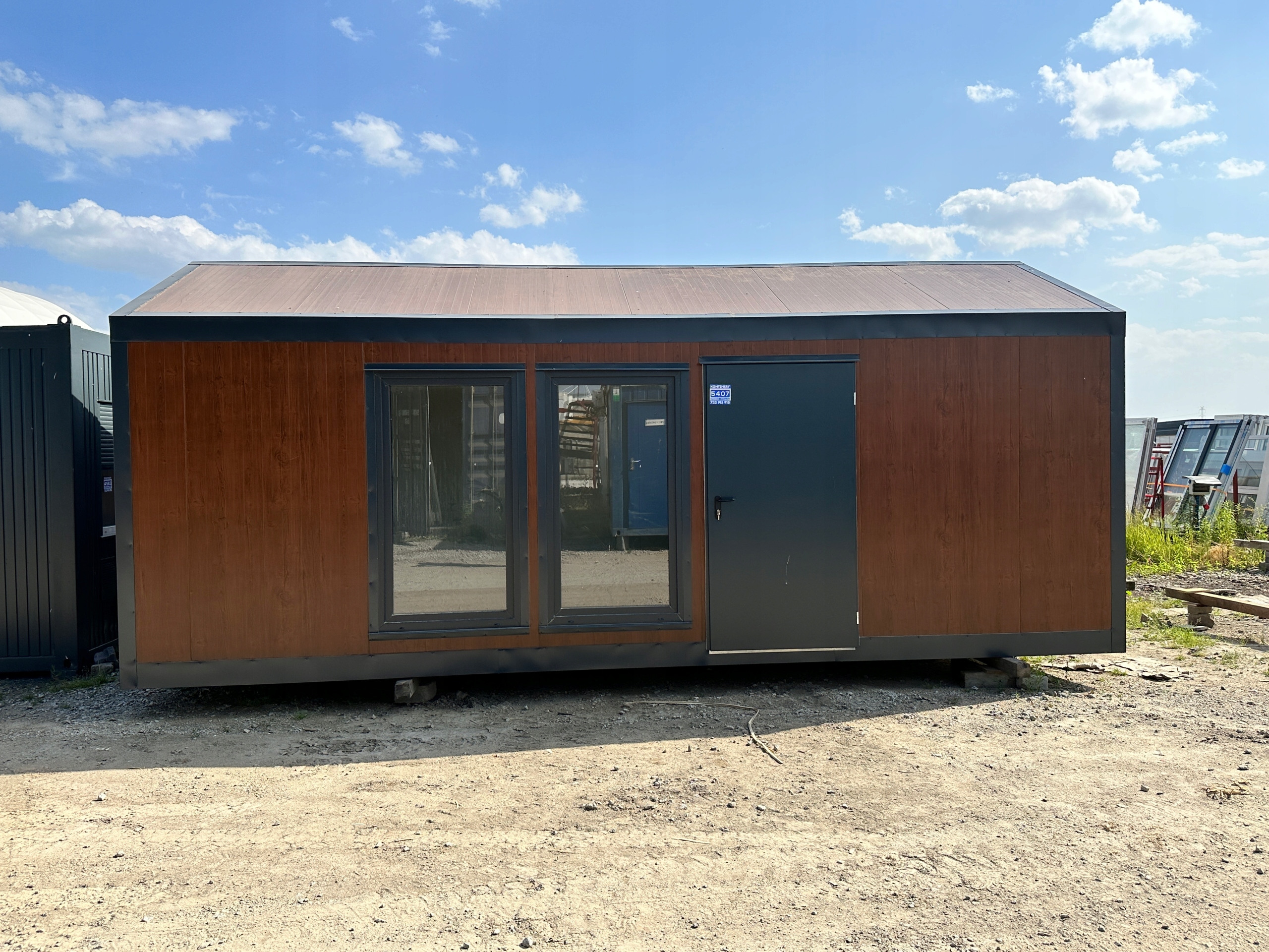 KONTENER “STODOŁA” DOM DOMEK MIESZKALNY CAŁOROCZNY LETNISKOWY 3 x 7 – SZKLANE DRZWI + DUŻE WITRYNY