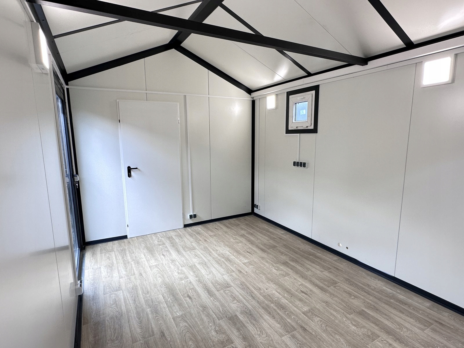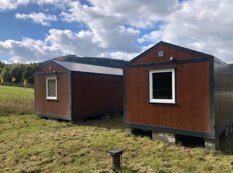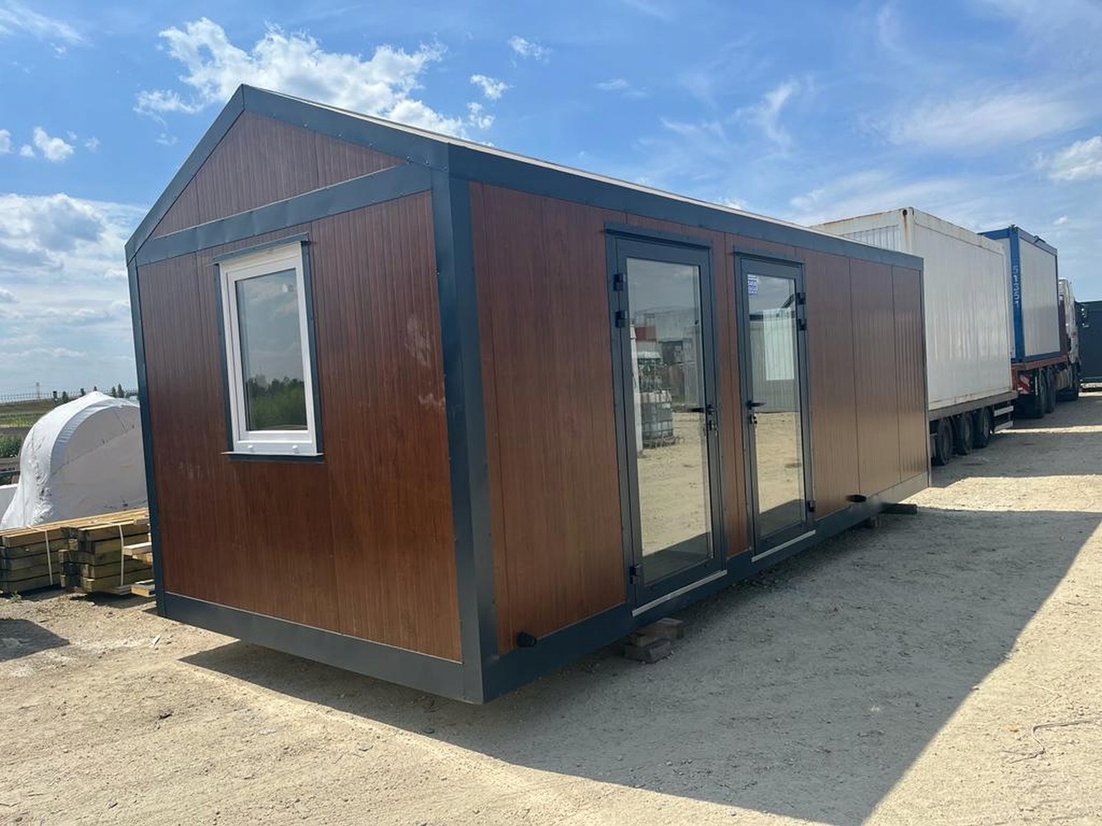 KONTENER “STODOŁA” DOM DOMEK MIESZKALNY CAŁOROCZNY LETNISKOWY 3 x 7 – SZKLANE DRZWI + DUŻE WITRYNY