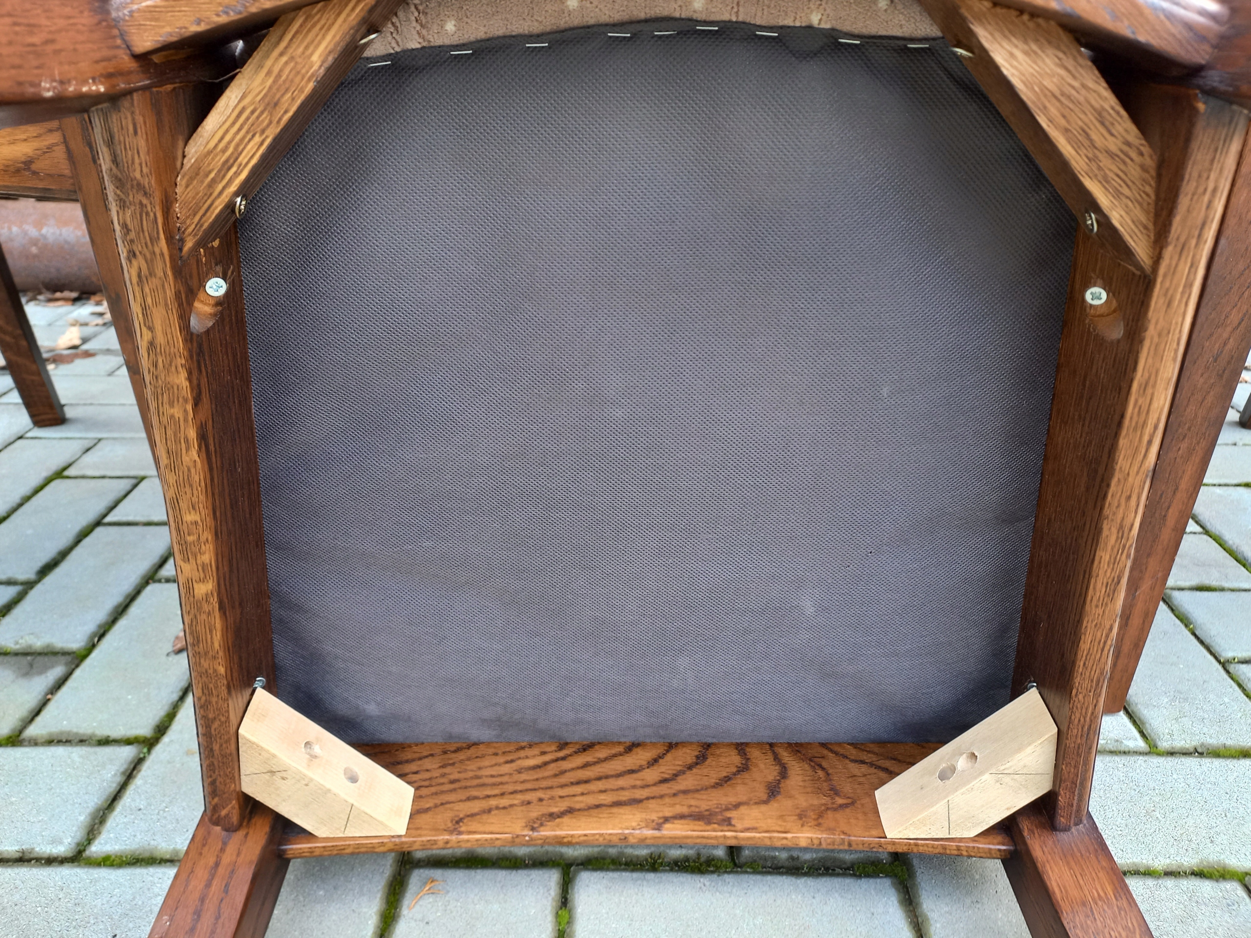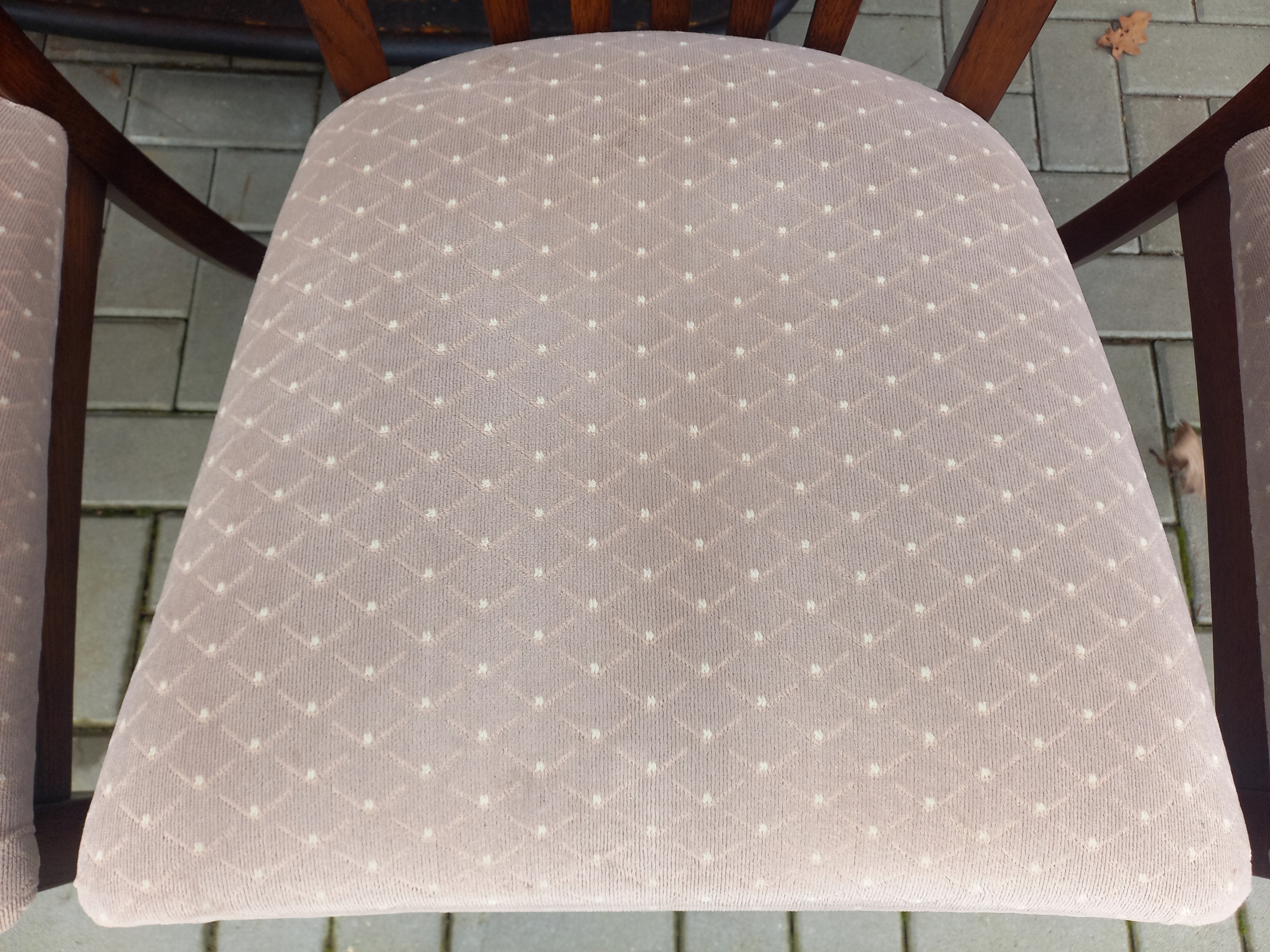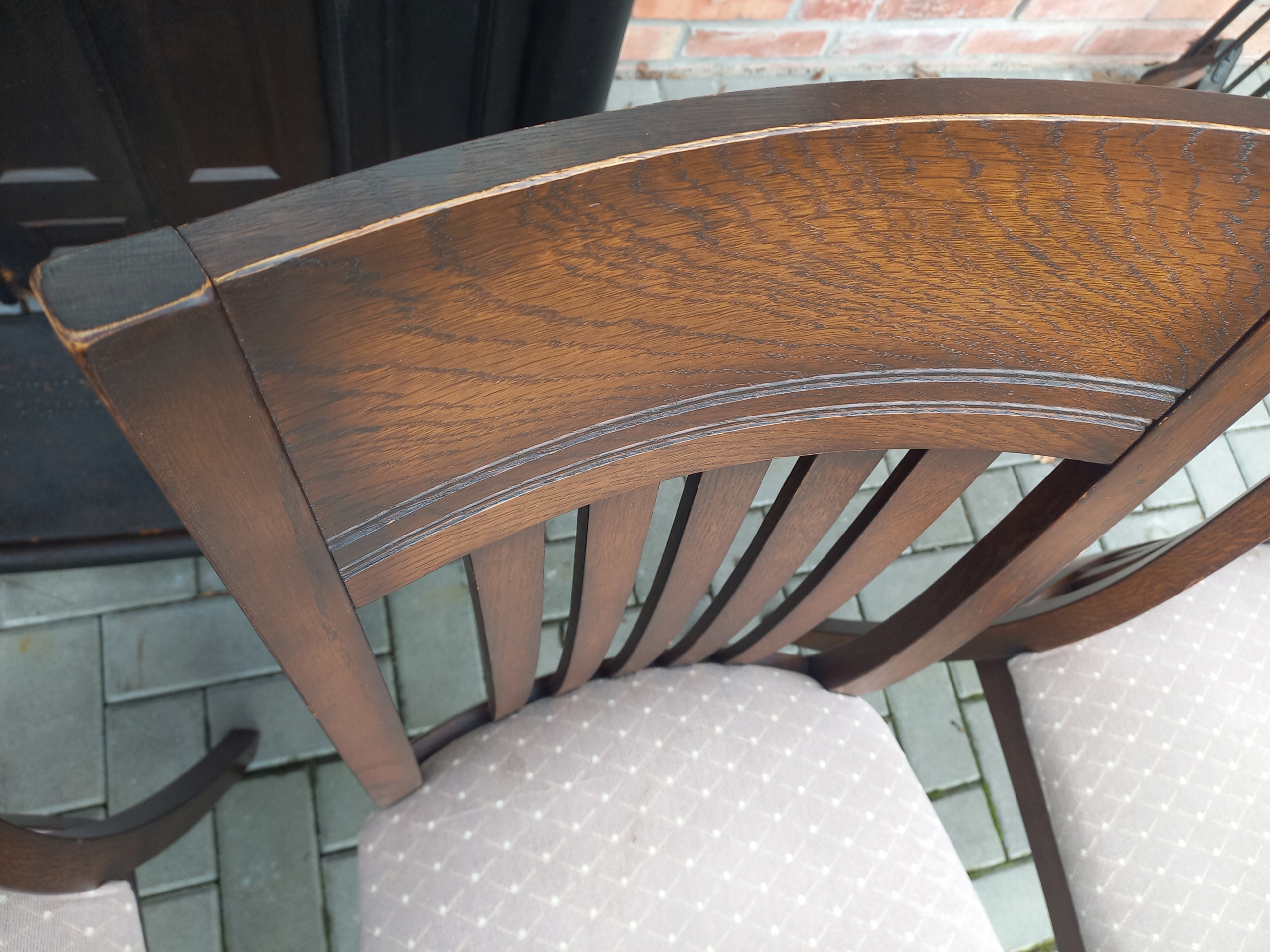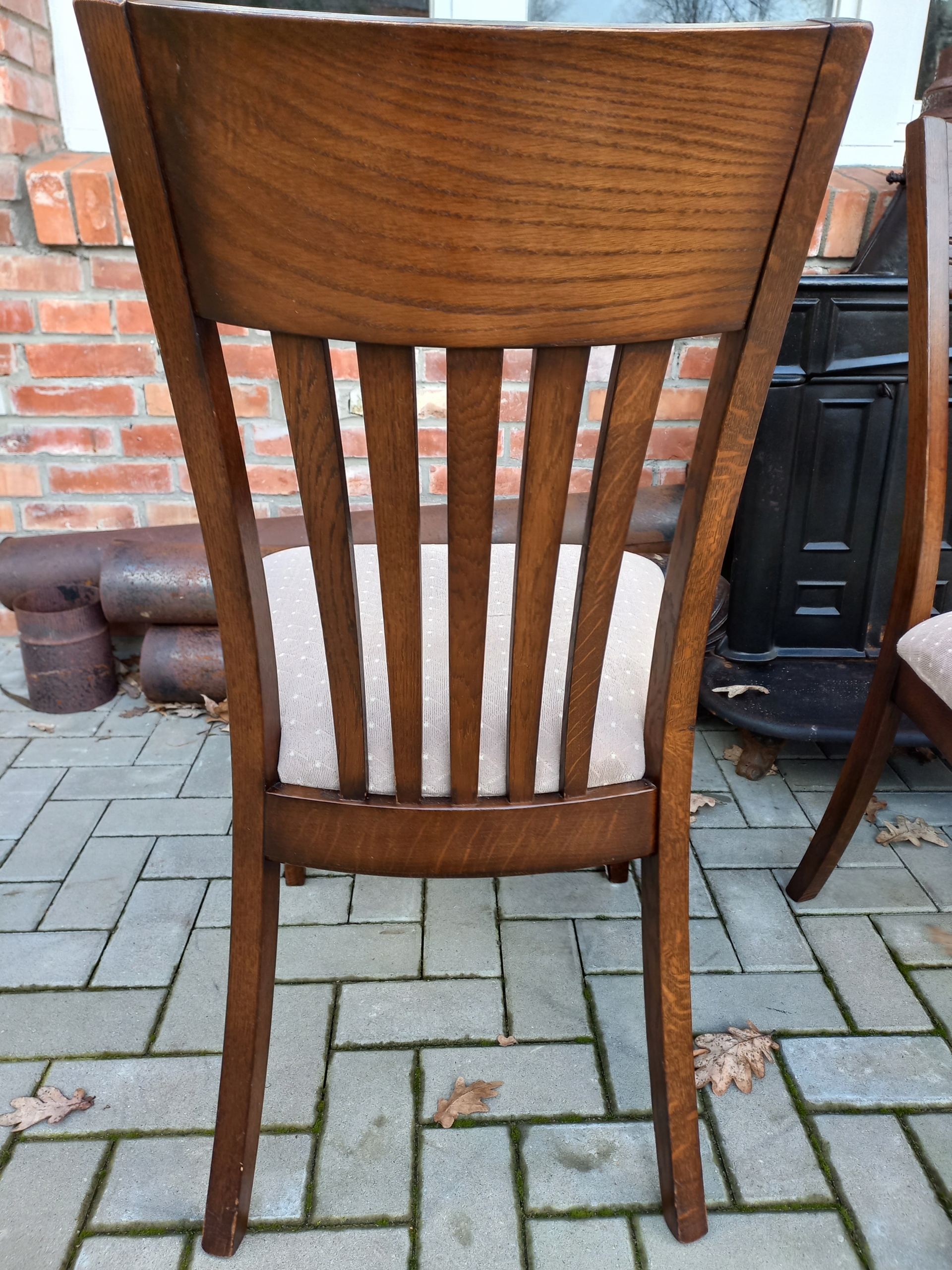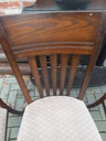 Przedmiotem mojej oferty są krzesła drewniane z materiałową tapicerką.