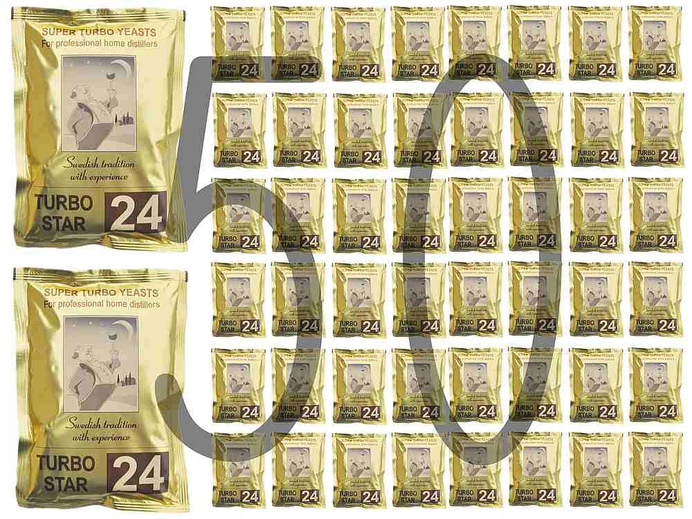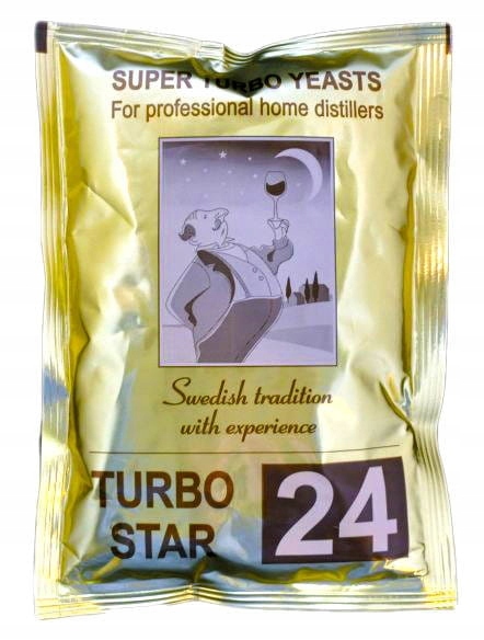 Doskonałe drożdże gorzelnicze TURBO STAR 24 przeznaczone do nastawów cukrowych 25 litrowych, które fermentują w ciągu 24 godzin uzyskując 15% mocy, a do 20% w 5 dni.