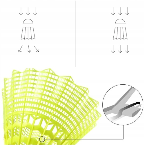 Zaprojektowana dla średnio zaawansowanych graczy trenujących w klubie. Topowa gama wśród plastikowych lotek. Idealna, spadochronowa trajektoria, zbliżona do trajektorii lotek z piór.
