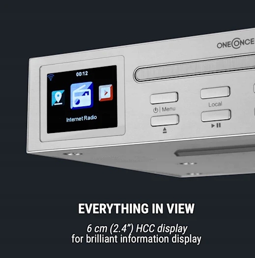Funkcja WLAN pozwala bezprzewodowo odbierać niezliczone internetowe stacje radiowe, zapewniając dostęp do ponad 14 000 stacji radiowych na całym świecie. Dzięki kolorowemu wyświetlaczowi HCC o wysokiej rozdzielczości zawsze możesz zobaczyć godzinę, stację radiową, utwór lub informacje o pogodzie. Dzięki Bluetooth możesz przesyłać strumieniowo muzykę ze smartfona, tabletu lub komputera w prosty sposób i odtwarzać ją przez głośnik. Wbudowany odtwarzacz CD odtwarza najbardziej przystępne formaty i zachwyca łatwością obsługi.