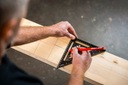 Kątownik SOLA może być również używany jako pomoc przy cięciu lub prowadnica piły w celu wykonania prostopadłych cięć. W tym procesie, kątownik jest bezpiecznie przytrzymywany na miejscu, piła jest pozycjonowana i używana do cięcia wzdłuż krawędzi znakowania. Nie ma znaczenia, czy używana jest wyrzynarka, czy ręczna pilarka tarczowa. Możliwe są również cięcia ukośne pod kątem 45°.