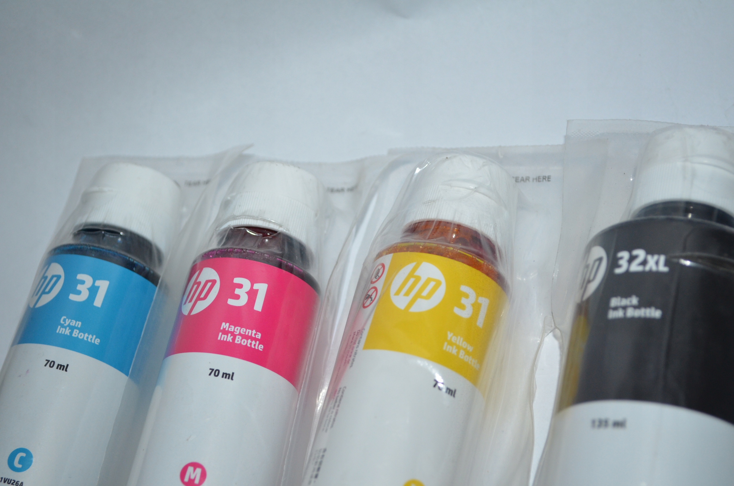 Butelki z oryginalnym atramentem HP 31 Color i 32XL Black, 4 sztuki, 7E6X7AN