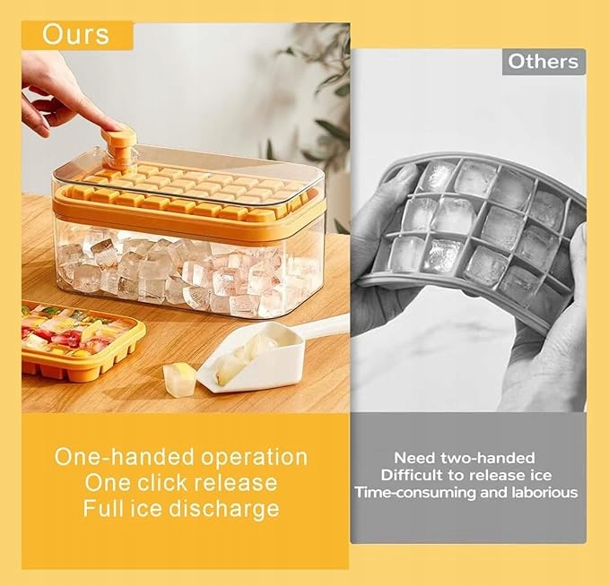 ▶ Górna warstwa tworzy lód, podczas gdy dolna warstwa przechowuje lód, dzięki czemu produkcja i przechowywanie są kompatybilne. Dwuwarstwowa konstrukcja ma 64 przegródki, zwiększając przestrzeń do robienia lodu i zapewniając niewielką powierzchnię do przechowywania do użytku domowego.