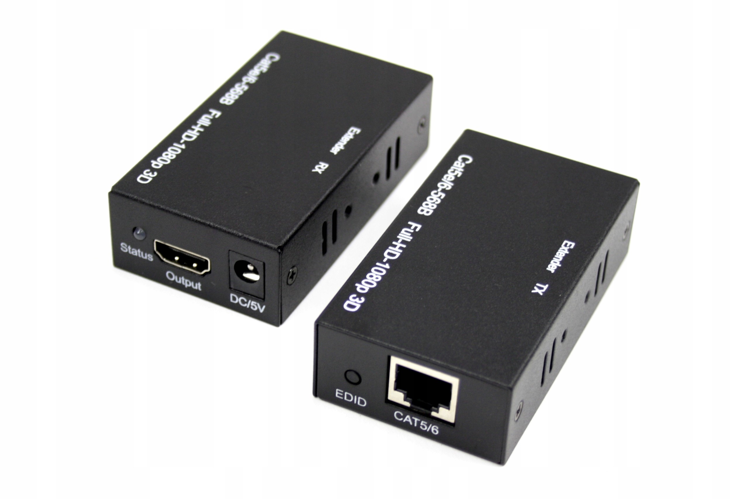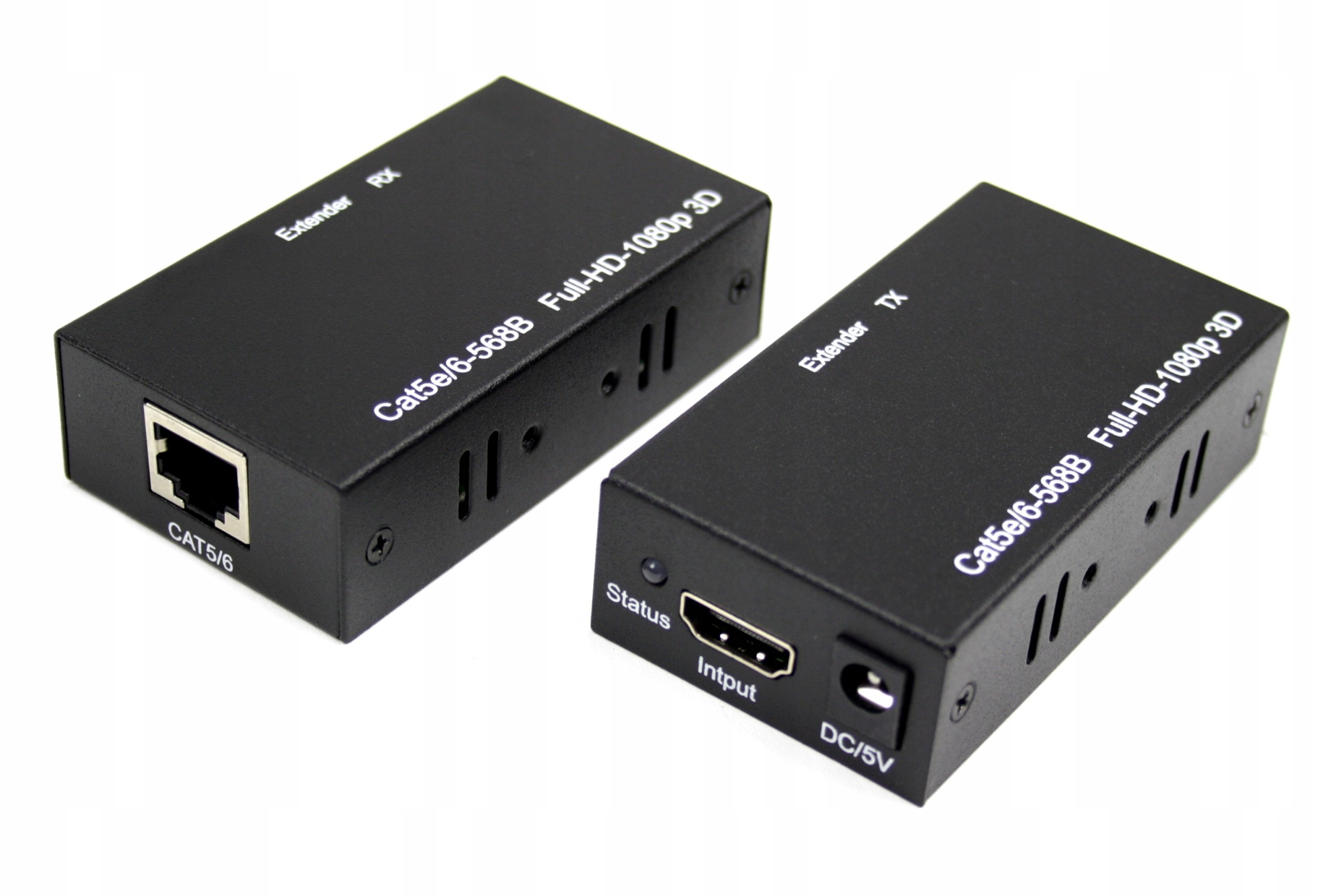Extender składa się z dwóch urządzeń (nadajnika i odbiornika). Jedno posiada wejścia HDMI, RJ45 LAN, drugie oprócz wspomnianych dodatkowo posiada jeszcze wejście na zasilacz.