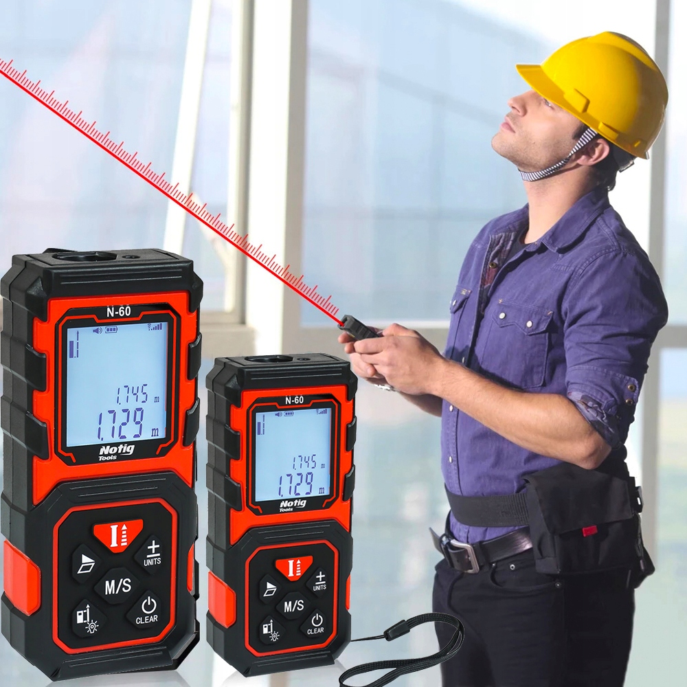 Nowoczesny dalmierz laserowy marki Notig Tools wyposażony jest procesor zapewniający szybkie, dokładne i zaawansowane pomiary. Instrumenty zarządzane są za pośrednictwem poręcznego panelu z dużym i kolorowym wyświetlaczem, na którym prezentowane są wyniki pomiarów i wynikające z tego obliczenia. Dzięki wbudowanej pamięci zapamiętuje 20 ostatnich pomiarów. Podświetlany wyświetlacz ułatwia odczyt pomiaru. Urządzenie charakteryzuje się dużym zakresem temperatury pracy od -0°C do 40°C. Dodatkowo wyposażony w mocny futerał z możliwością zawieszenia na pasku.