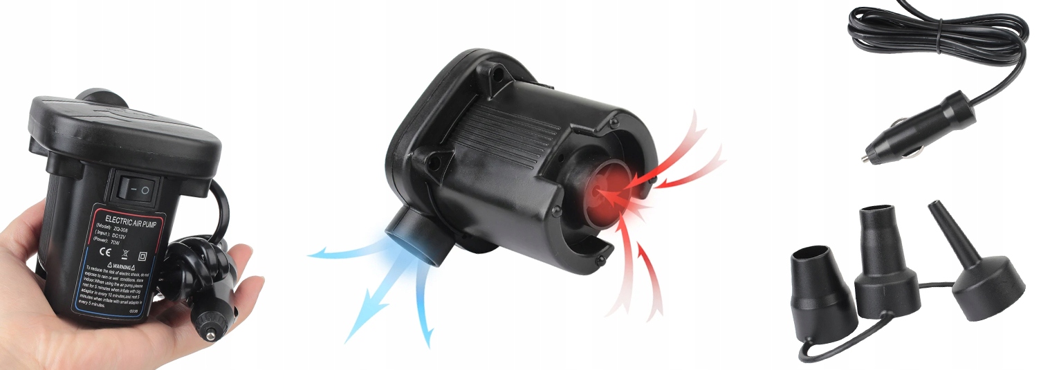 ✌ Dołączona pompka samochodowa jaką otrzymasz w zestawie, świetnie nadaje się do dmuchania piłek, kół do pływania, dmuchanych zabawek, materacy, czy basenów.