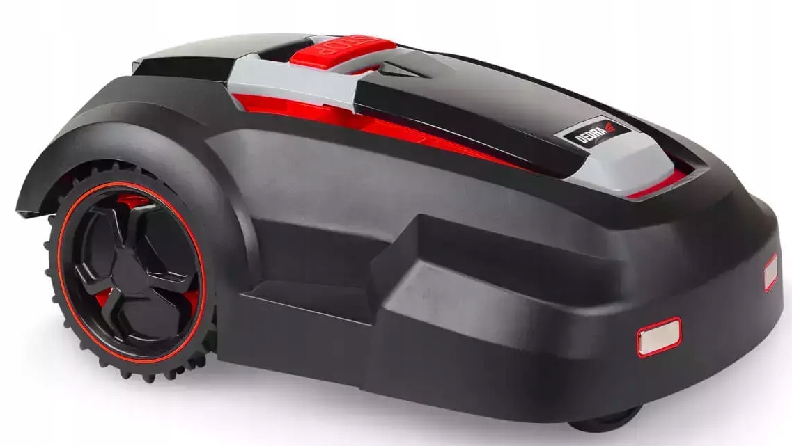 Robot koszący posiada wbudowany 28V akumulator o pojemności 3Ah, pozwalający na skoszenie do 1000m2 trawnika.