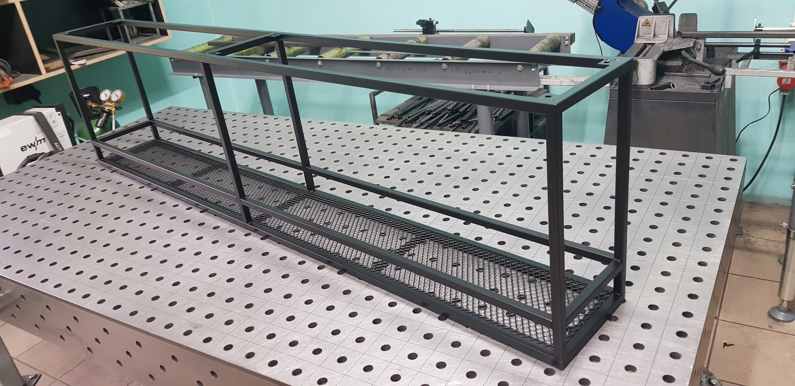 Półka wykonana z kształtownika stalowego 15x15 mm lakierowanego proszkowo w kolorze czarny mat.