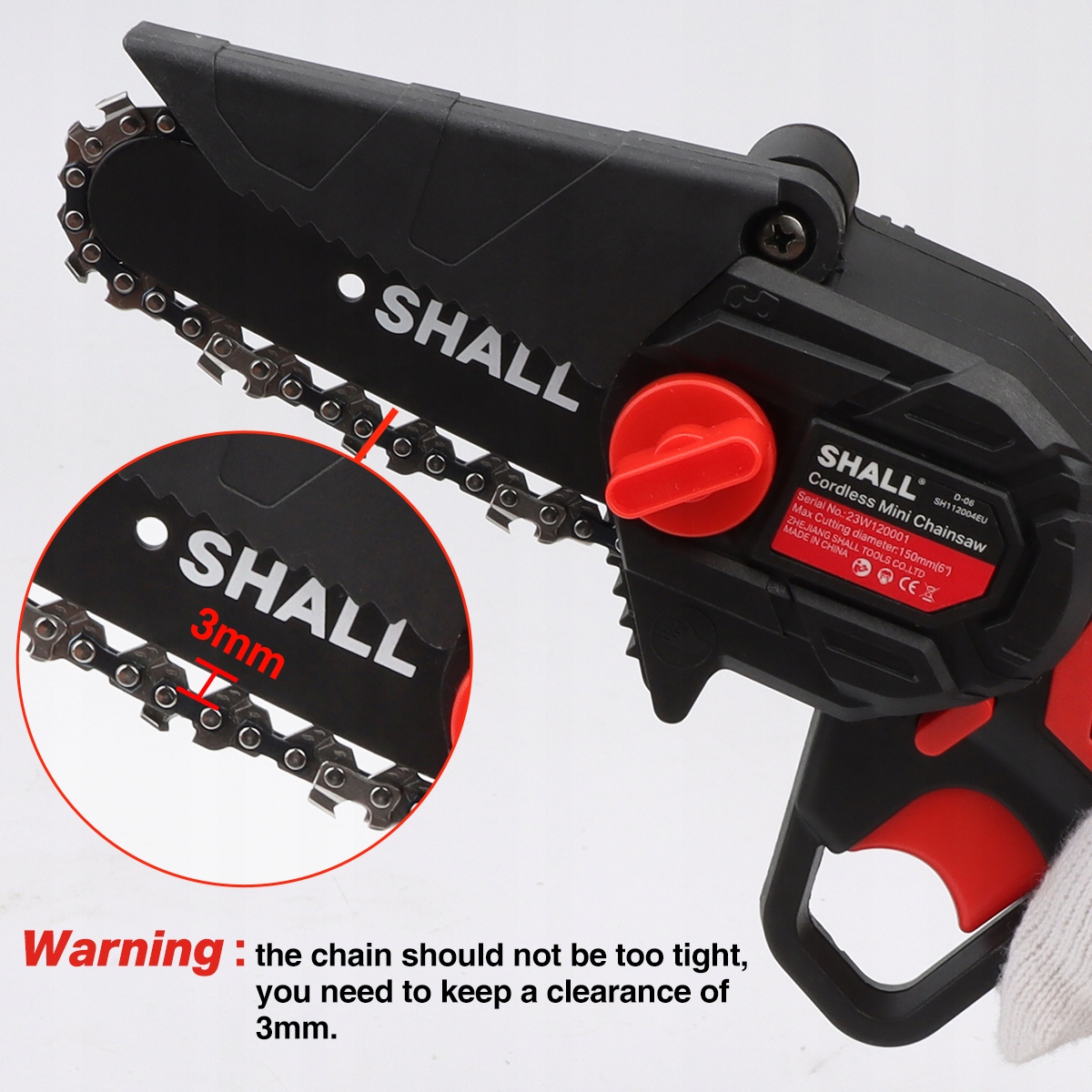 [Bezpieczeństwo]: Nowo zaprojektowana minipiła łańcuchowa jest wyposażona w osłonę przeciwbryzgową, bezpłatne rękawiczki i okulary, które chronią Cię przed przecięciem i przecięciem gałęzi. Blokada wyłącznika bezpieczeństwa zapobiega przypadkowemu uruchomieniu i zapewnia bezpieczeństwo użytkownika.