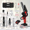 [Akumulator litowy o dużej pojemności]: Nasza piła łańcuchowa z akumulatorem jest wyposażona w 2 akumulatory litowe 2000 mAh i szybką ładowarkę, normalny czas użytkowania może sięgać 1,5–2 godzin. Akumulator litowo-jonowy z zabezpieczeniem temperaturowym i automatycznym przeładowaniem zapewnia dłuższą żywotność akumulatora.