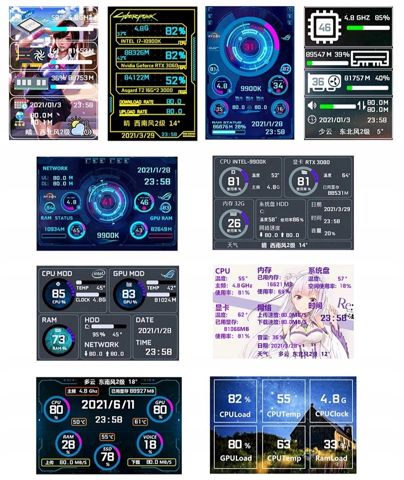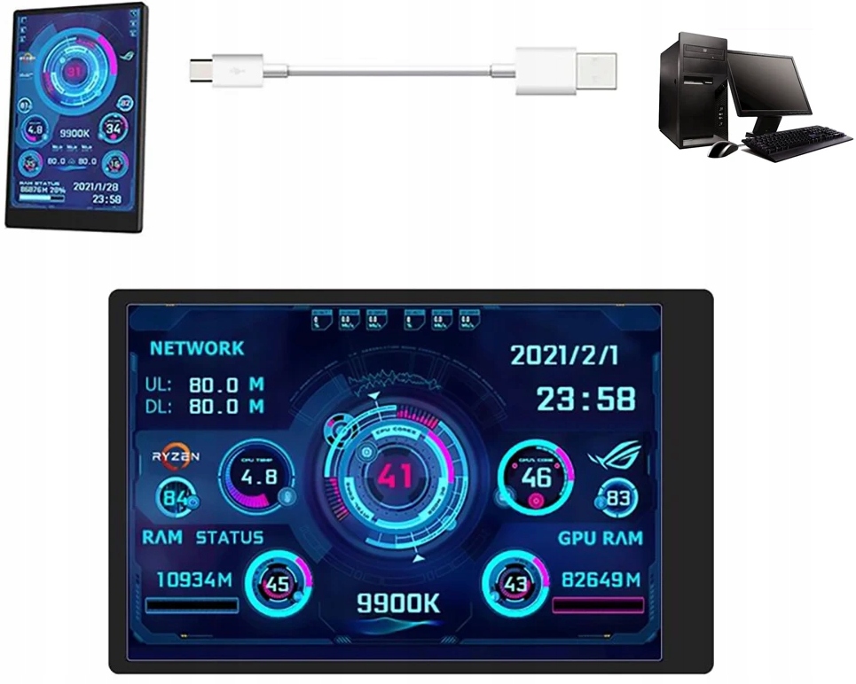 3,5-calowy dodatkowy ekran IPS do komputera, laptopa lub notebooka, którego zadaniem jest monitorowanie systemu PC AIDA64.