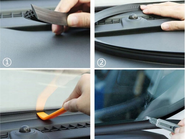 Заполняет щель между стекло и кабина (доска) внутри автомобиля. Неудачный зазор между приборной панелью и с ветровым стеклом, неизбежно со временем эта полость поглощает ручки, купюры, монеты и т. д., Когда предметы будут скользить в эту щель, тогда их очень трудно извлечь, и они вызывают дребезжание и визг во время езды !!! Прокладка универсальна и подходит для всех автомобилей ; личные, внедорожники, микроавтобусы, автобусы, МДП и т. д