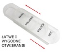 Это предотвращает передозировка больного лекарствами в определенный день. Продукт предназначен как для использования на дому, а также в условиях домашнего ухода, в больнице или других лечебных учреждениях. Контейнер небольшой и изготовлен из легкого материала для удобства использования лекарства вне дома.