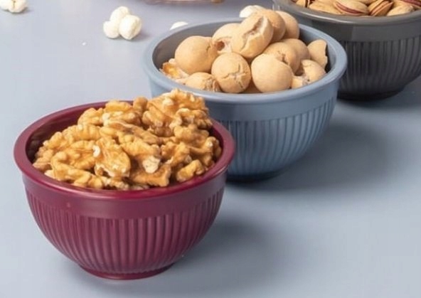 Wykonane z wysokiej jakości plastiku, w jednolitym kolorze, te miseczki są zarówno praktyczne, jak i estetyczne, pasując do każdego wnętrza.