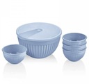 W skład zestawu wchodzi jedna duża miska o pojemności 2 litrów oraz cztery małe miseczki, każda o pojemności 250ml, co sprawia, że są one idealne do przechowywania różnorodnych produktów spożywczych.