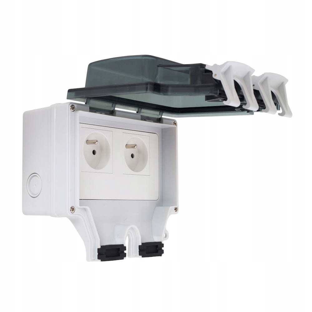 Natynkowe PODWÓJNE gniazdo hermetyczne z uziemieniem i polskim standardem CEE 7/5 ( gniazdo z bolcem).