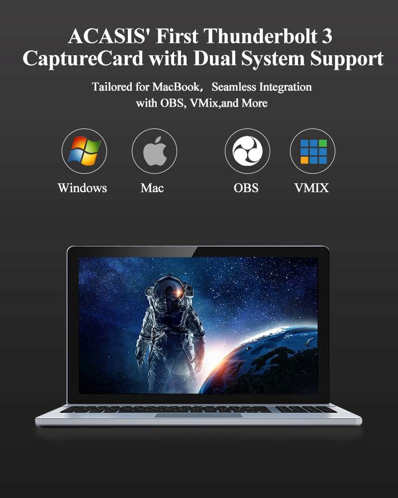 Dzięki prędkości do 40 Gb/s, ta karta przechwytująca oferuje ultraszybki transfer wideo bez ograniczeń zasilania, dzięki czemu można ją zabrać wszędzie. Teraz użytkownicy komputerów Mac i Windows mogą cieszyć się wysoką wydajnością przechwytywania Thunderbolt 3 bez ograniczeń systemu operacyjnego. Przenośność karty i jej wieloplatformowa wszechstronność zapewniają maksymalną wygodę twórcom treści i streamerom. Uwolnij potencjał szybkiego przechwytywania Thunderbolt 3 na komputerze Mac dzięki pierwszej zasilanej magistralą karcie przechwytującej Thunderbolt 3 firmy Acasis.