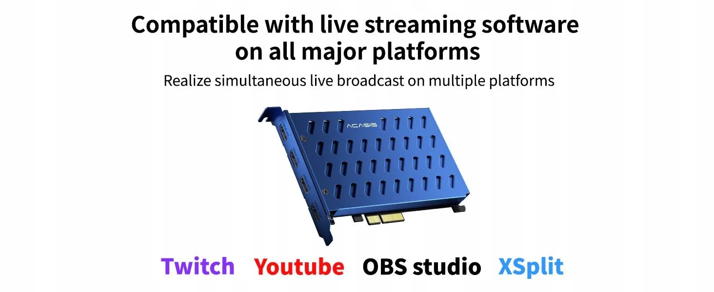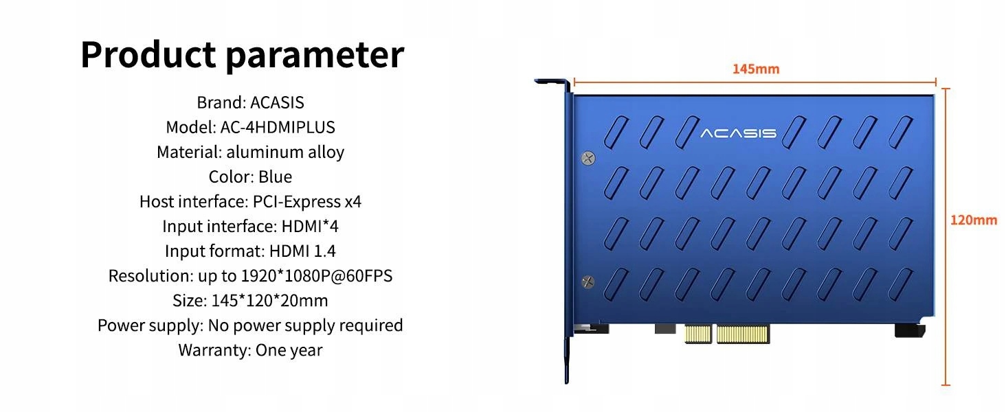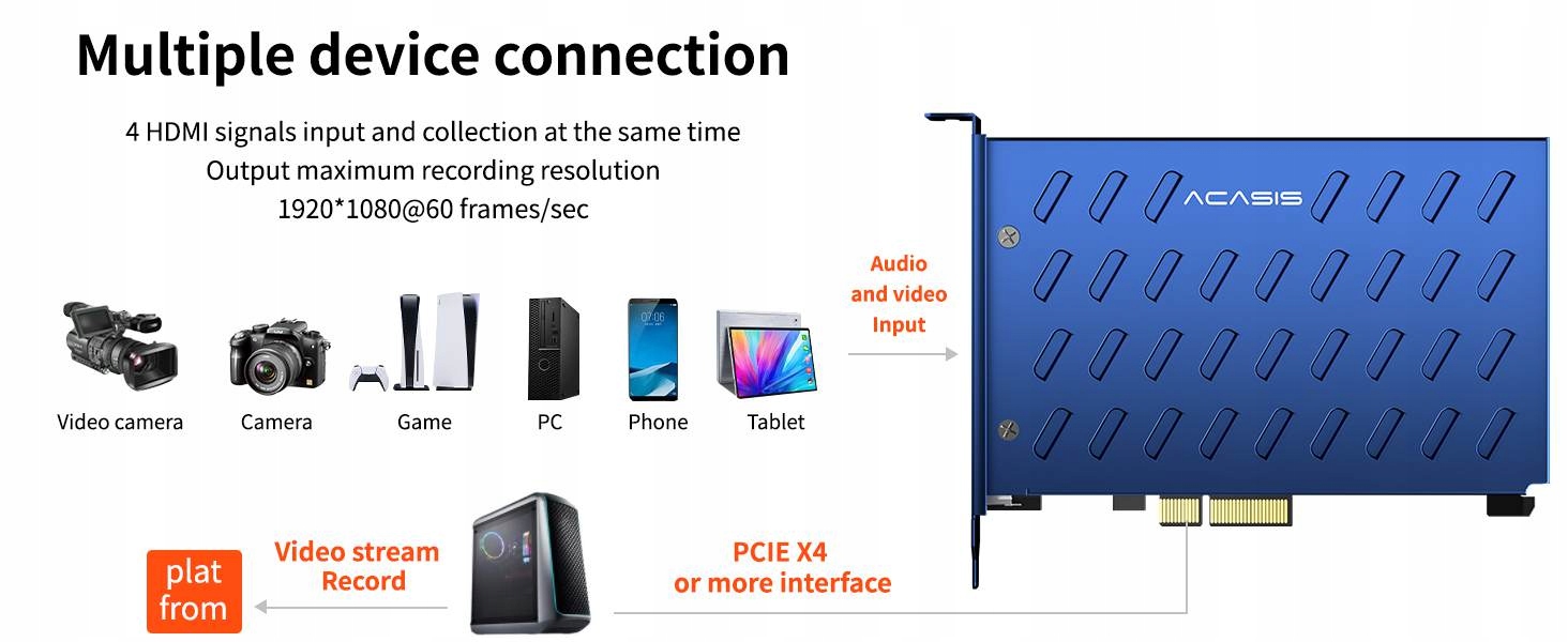 Karta PCIe do przechwytywania wideo ACASIS z 4x wejście HDMI. obsługuje cztery porty HDMI w tym samym czasie, długi czas pracy jest stabilny a obraz wyraźny. W pełni kompatybilna z głównymi aplikacjami do przechwytywania obrazu.