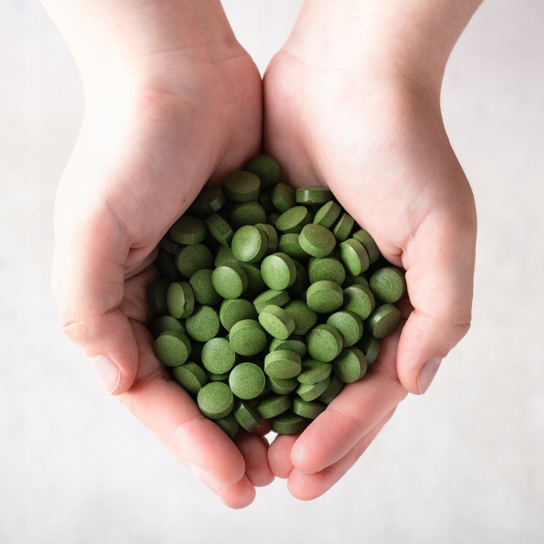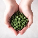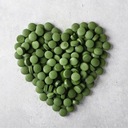 SKŁADNIKI: 99% chlorella, z rozerwaną ścianą komórkową, w tabletkach (250 mg), 1% dwutlenek krzemu