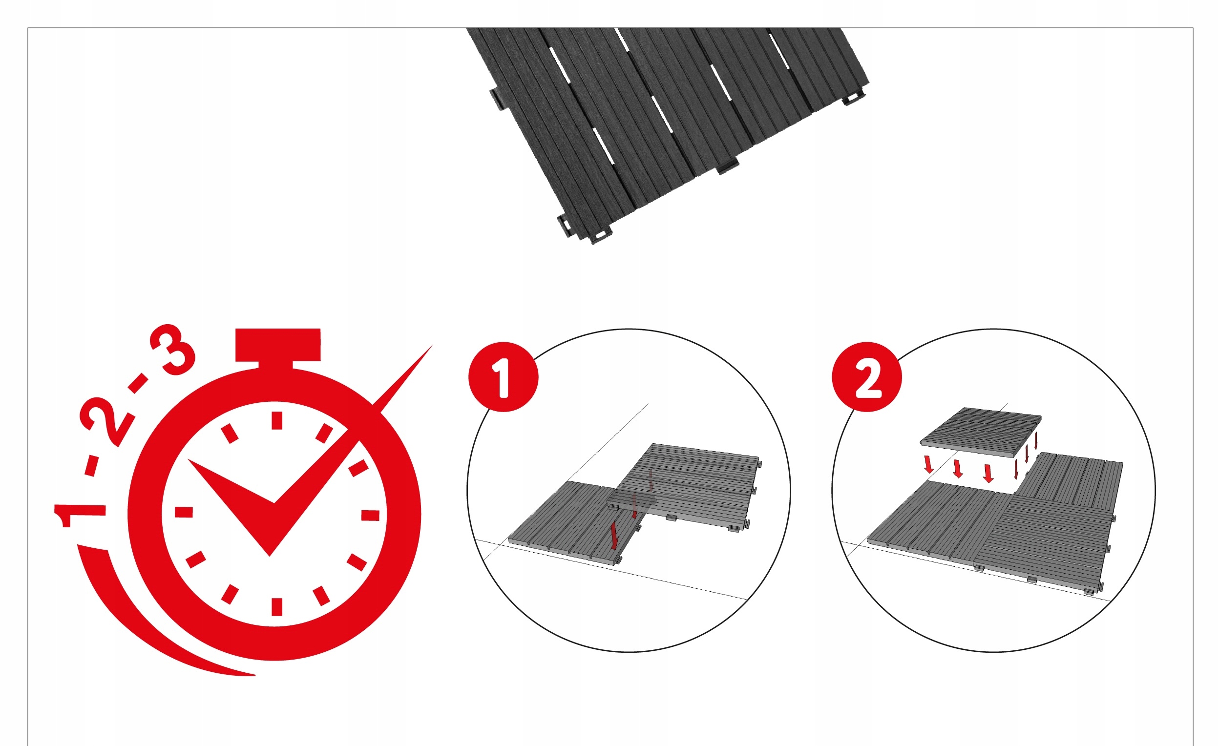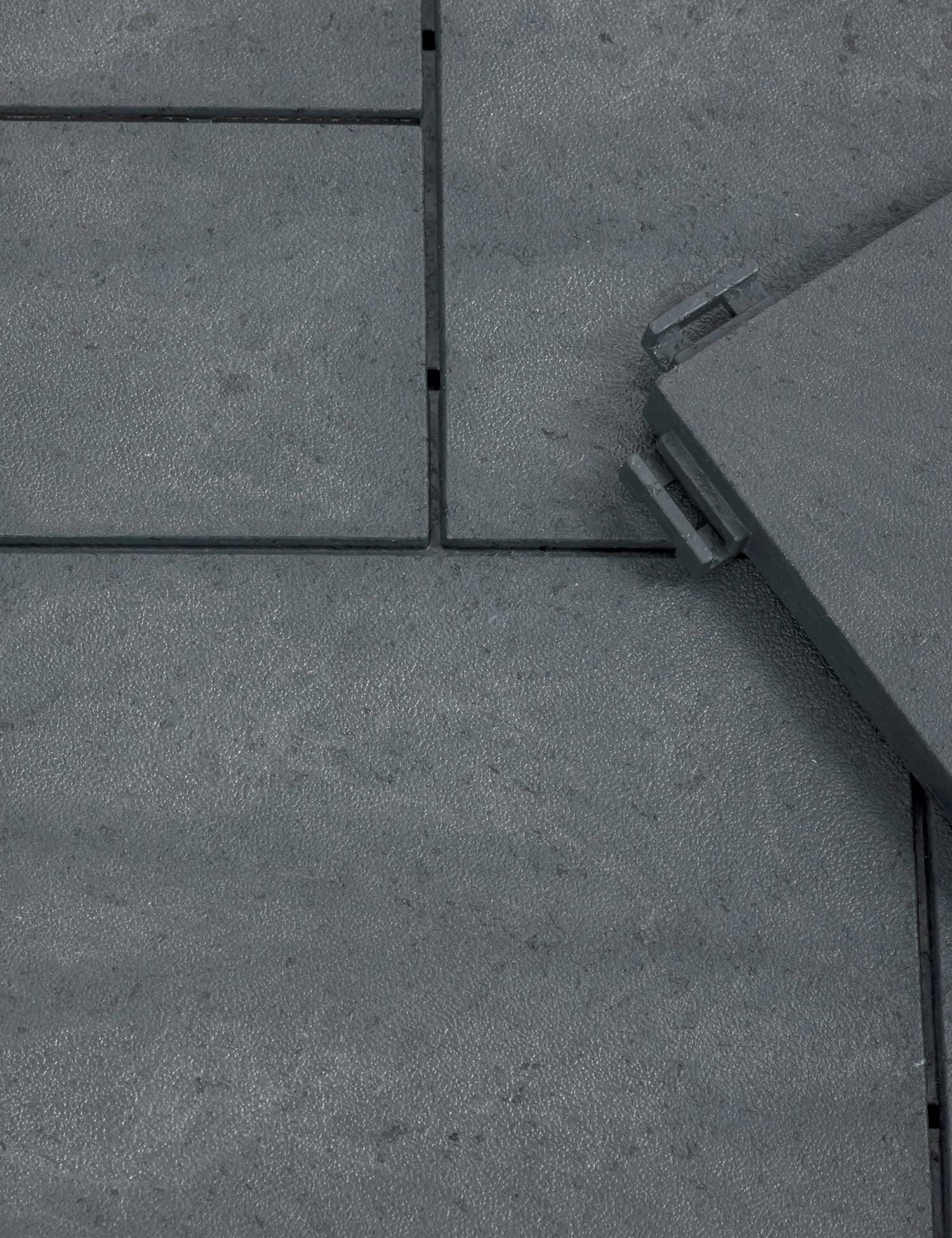 Podłoże powinno być utwardzone, wyrównane i oczyszczone z kurzu. Jeżeli jest ono kruszące się lub pyliste należy je zagruntować. Płytki nie są przeznaczone do mocowania na klej. Płytki łączą się ze sobą specjalnymi zatrzaskami. Można je wielokrotnie montować i rozmontowywać. Istnieje możliwość ich docinania na potrzebny wymiar. Należy zostawić dylatacje (3- 4 mm na płytkę), gdyż tworzywo pod wpływem warunków atmosferycznych zmienia swoją właściwości.