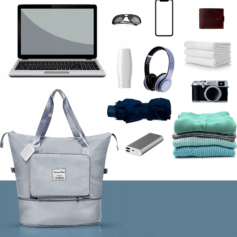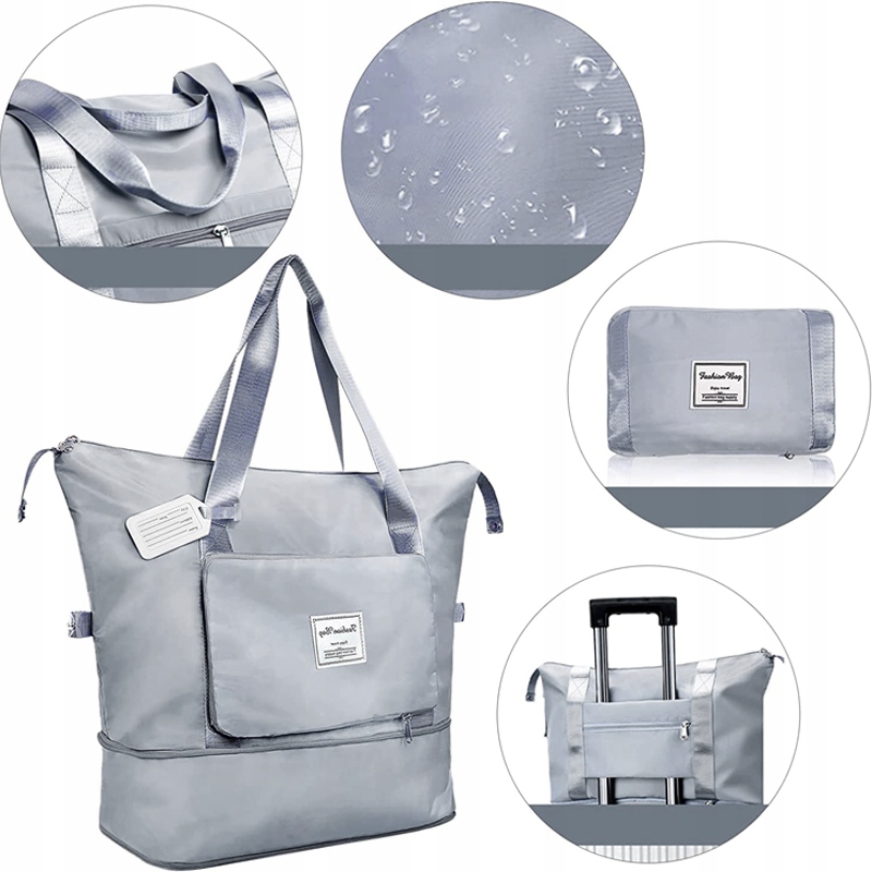 Składana torba o dużej pojemności idealnie sprawdzi się podczas wielu sytuacji. Torba posiada odpinane dno dzięki czemu może pełnić funkcję mniejszej torby lub większej w razie potrzeby.