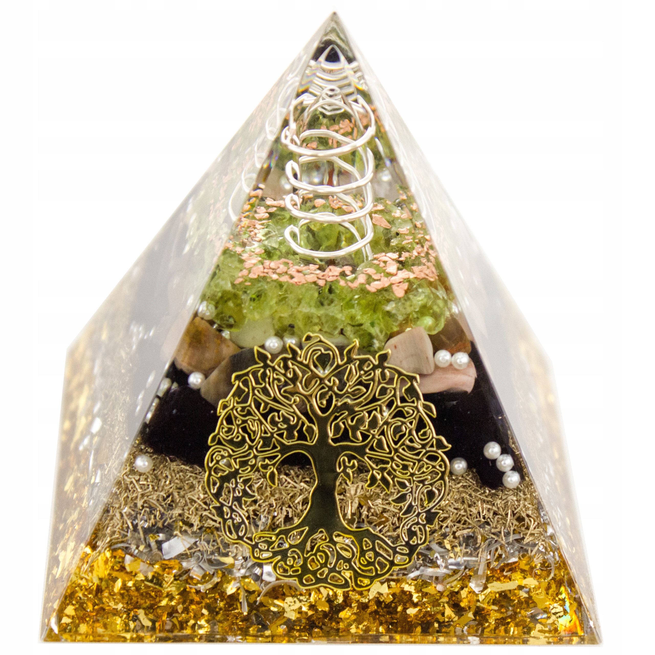 Piękna Piramidka Orgonitowa z symbolem Drzewa Życia - Połączenie Mocy i Harmonii.