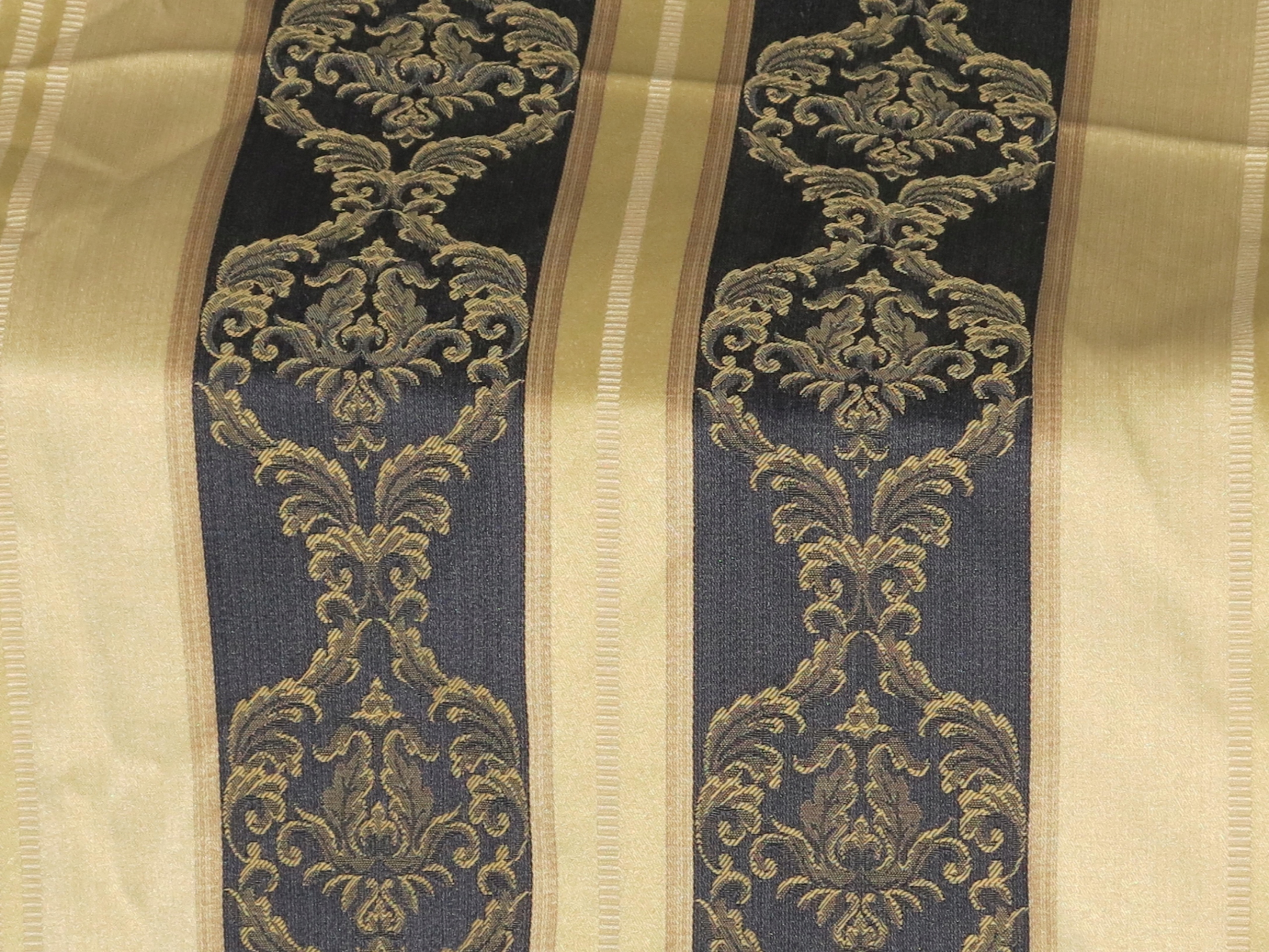 DO ANTYKÓW-WYTWORNE, STYLOWE ZASŁONY W LUDWIKOWSKIE PASY I WYBIJANY WZÓR. PASY W KOLORACH GRANATU I JASNEGO ZŁOTA. NA TKANINIE DODATKOWO WYBIJANY ZŁOTY WZÓR.
