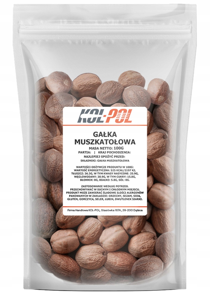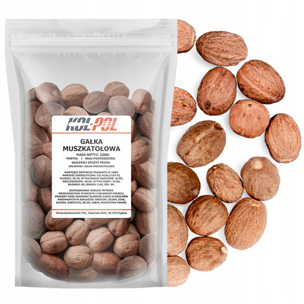 Торговое название Gałka muszkatołowa cała 100g Cały orzech aromatyczna wysoka jakość Kol-Pol