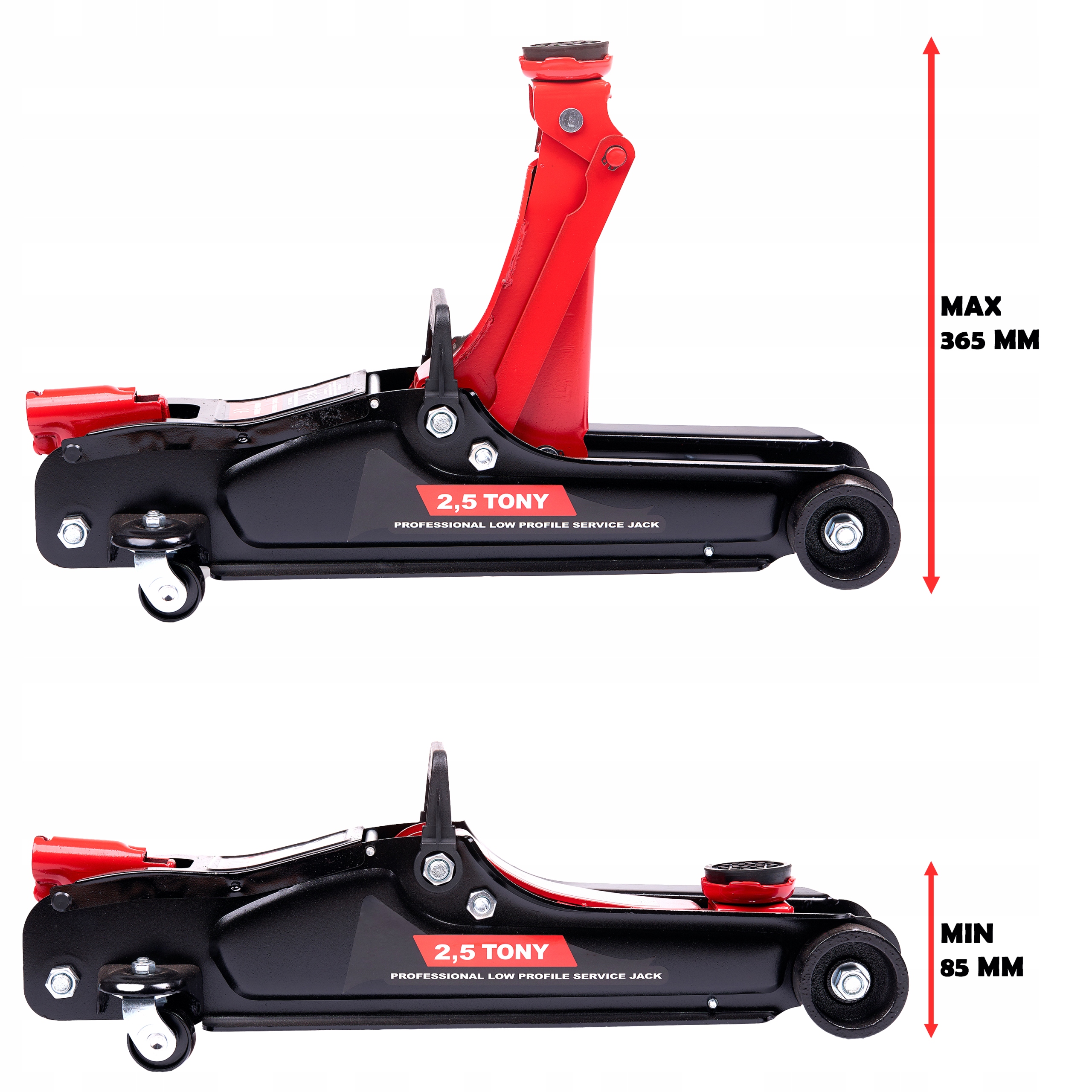 Profesjonalnie wykonany podnośnik został wyposażony w niezawodną i skuteczną pompę, dzięki czemu jest w stanie bez problemu podnosić pojazdy i przedmioty o maksymalnej wadze do 2500 kg. Urządzenie doskonale przyda się każdemu użytkownikowi auta w przydomowy garażu, jak i profesjonalnym warsztacie. Nie tylko w przypadku awaryjnych sytuacji, ale również do samodzielnych prac przy samochodzie takich jak