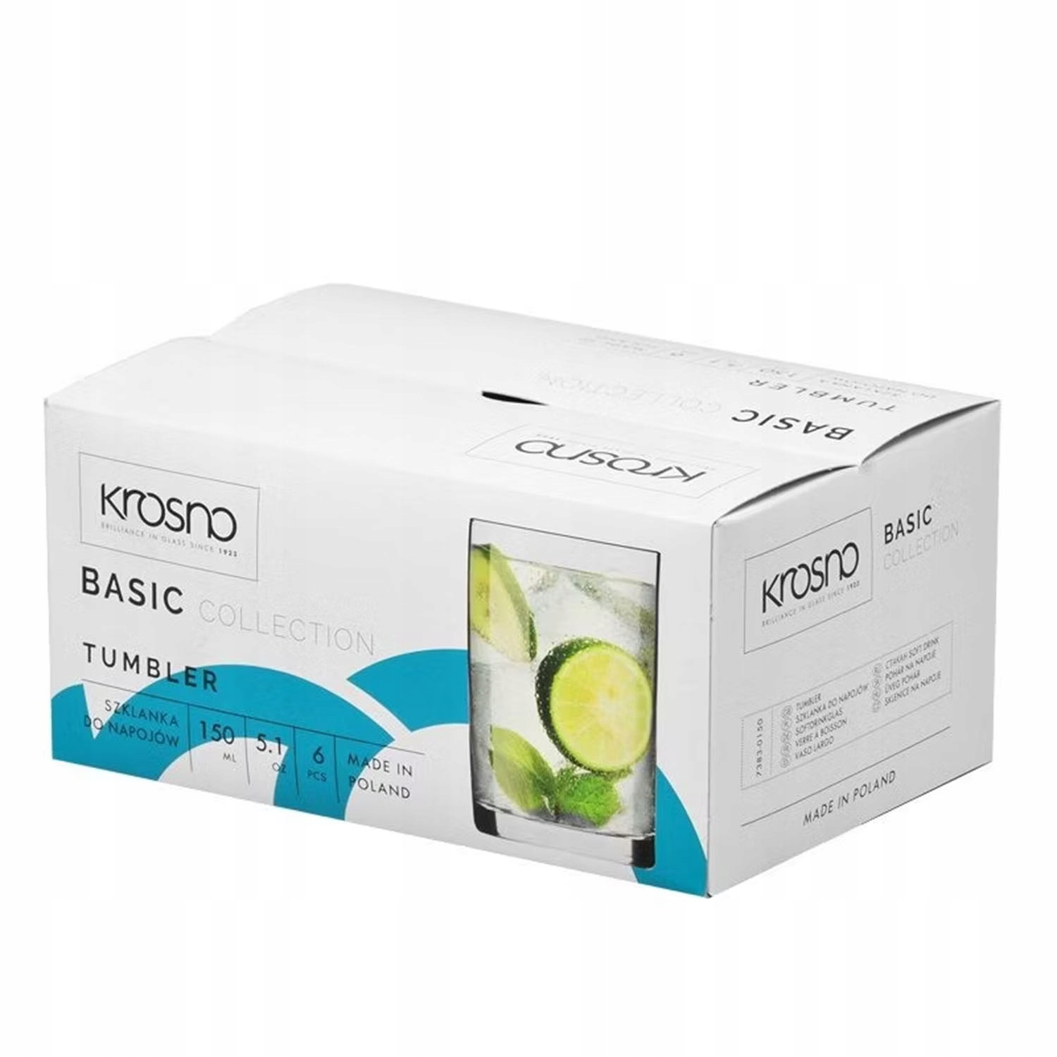 Zestaw 6 klasycznych szklanek typu literatka o pojemności 150 ml z serii Basic firmy Krosno. Linia Basic Krosno to seria szkła - kieliszków czy szklanke - w prostej, klasycznej formie. Takie szklanki doskonale sprawdzą się zarówno na co dzień, jak podczas szczególnych okoliczności. Doskonale sprawdzą się do podawania alkoholi, wody czy soków.