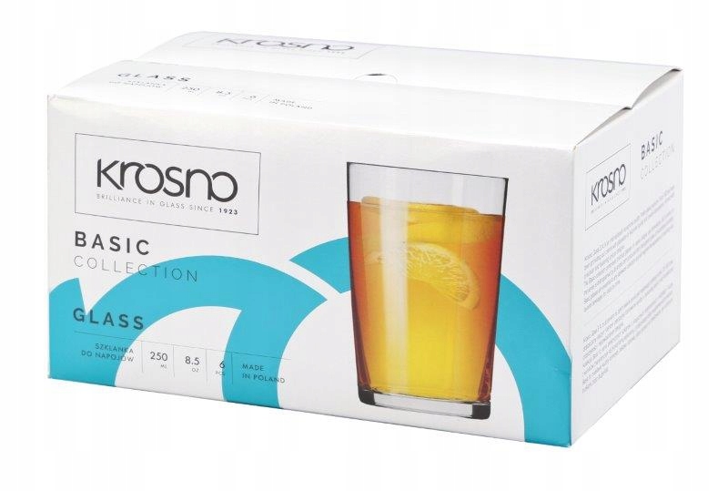 Zestaw 6 klasycznych, prostych, lekko rozchylanych szklanek o pojemności 250 ml z serii Basic firmy Krosno (niedgyś seria Tik).