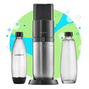 SodaStream DUO to nowoczesny, elegancki i niezwykle prosty w obsłudze ekspres do gazowania wody. Dzięki niemu stworzysz pyszny bąbelkowy napój o wybranym poziomie nagazowania już w kilka sekund. Saturator do gazowania wody DUO umożliwia korzystanie z dwóch rodzajów butelek: szklanych i klasycznych przeznaczonych do mycia w zmywarce. Wybierz klasyczną butelkę Fuse 1l z trwałego tritanu i weź ją ze sobą – do samochodu, biura lub na zakupy. Postaw na elegancką szklaną karafkę DUO 1l i podaj w niej wodę prosto na stół w jadalni lub ogrodzie.