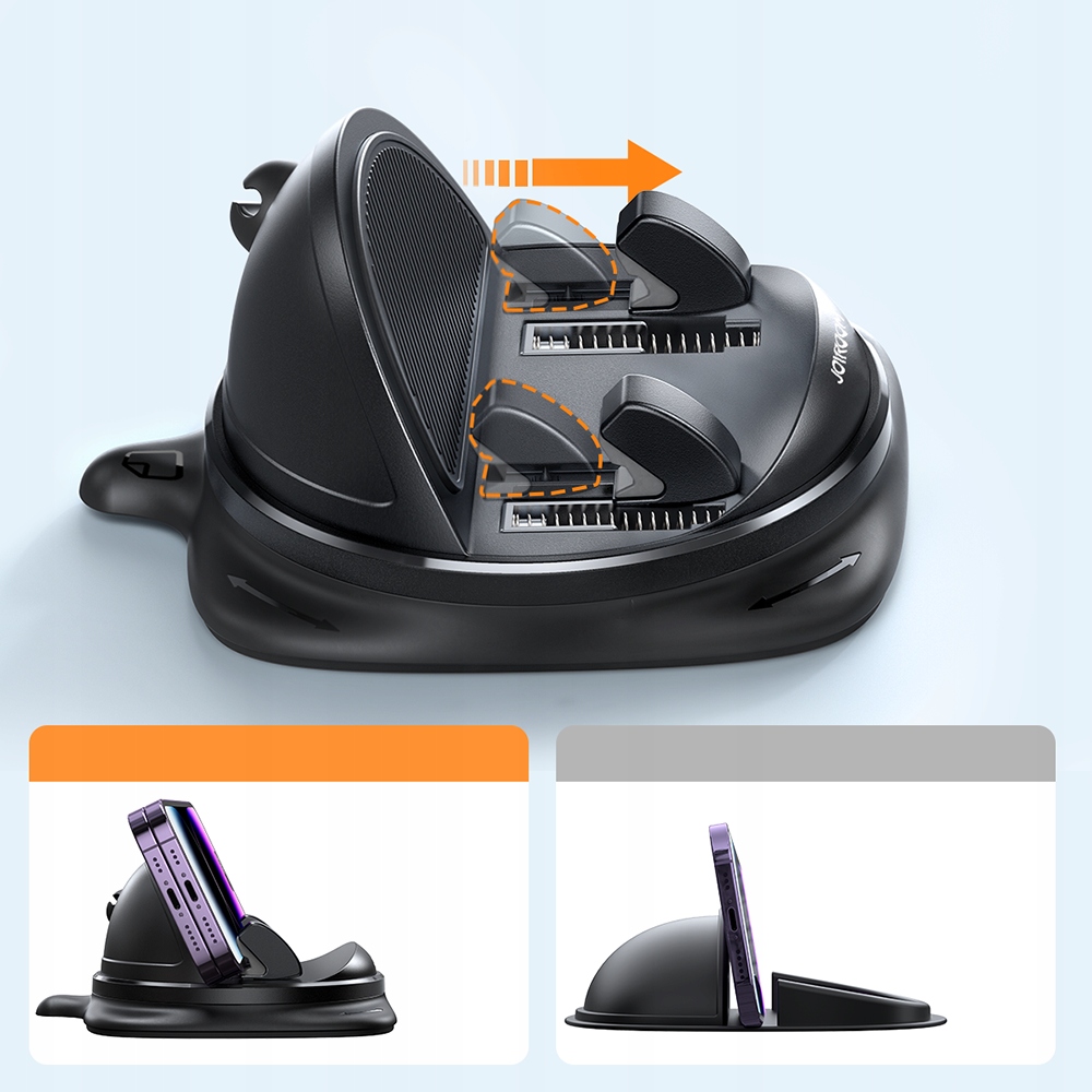 Poznaj Joyroom JR-ZS354 - ciekawy uchwyt do telefonu o wszechstronnym zastosowaniu. Obrotowa podstawa i możliwość montażu na dowolnej płaskiej powierzchni sprawiają, że możesz go zamocować w aucie, domu czy biurze.