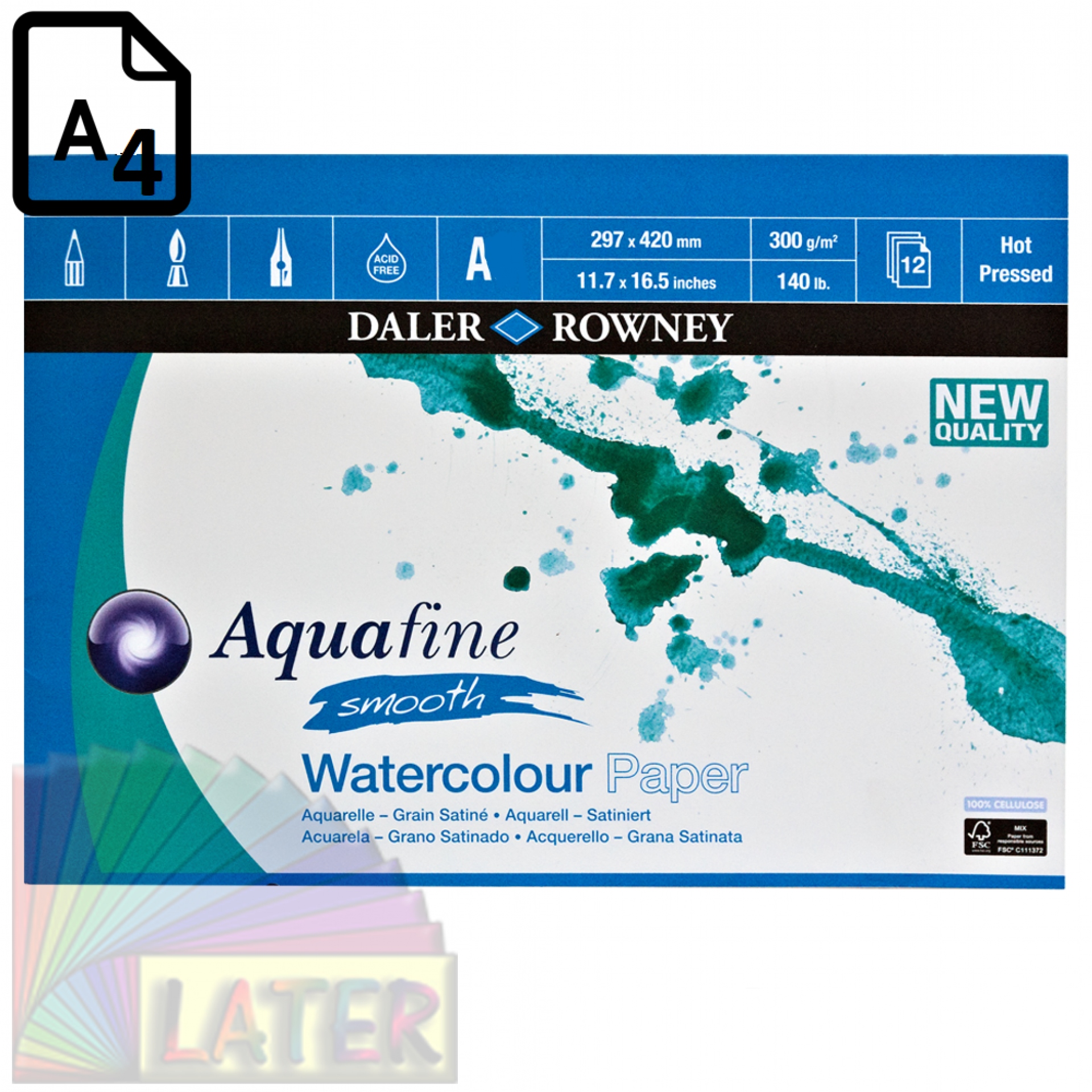 DALER ROWNEY BLOK AQUAFINE A4/12A 300G HOT PRESS.