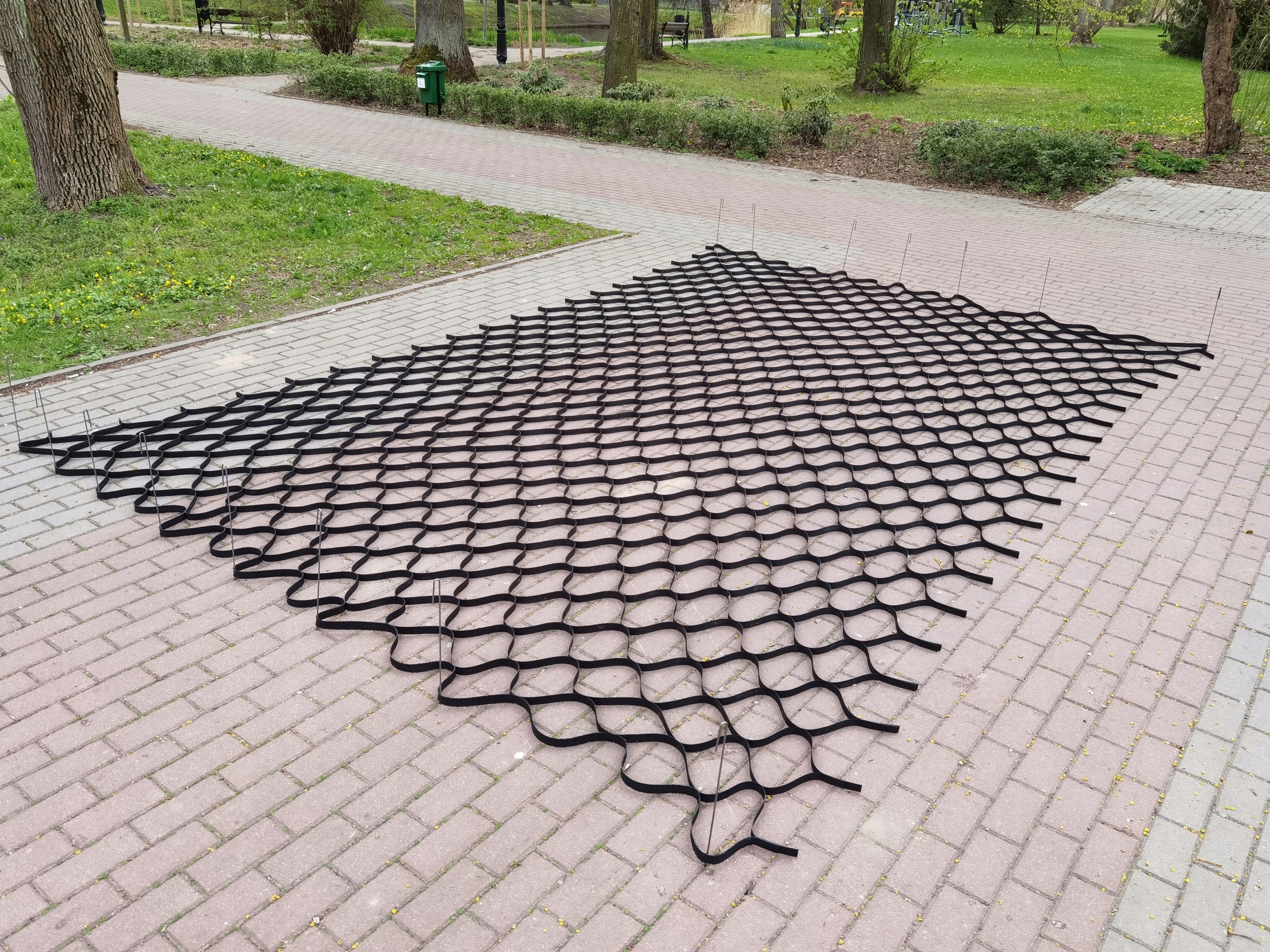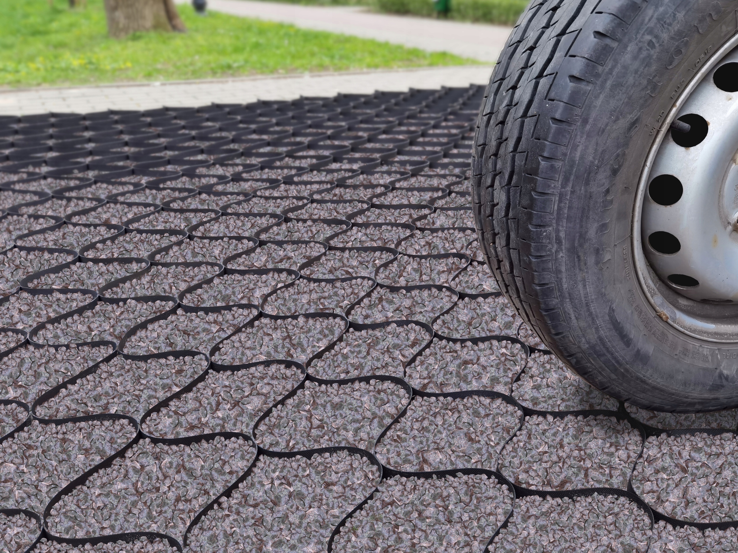 Geosiatka komórkowa to produkt, który rozwiązuje problem słabej nośności gruntu rodzimego. Jego działanie polega na redukcji naprężeń pionowych, poprzez stworzenie podbudowy, która zachowuje się jak półsztywna płyta.