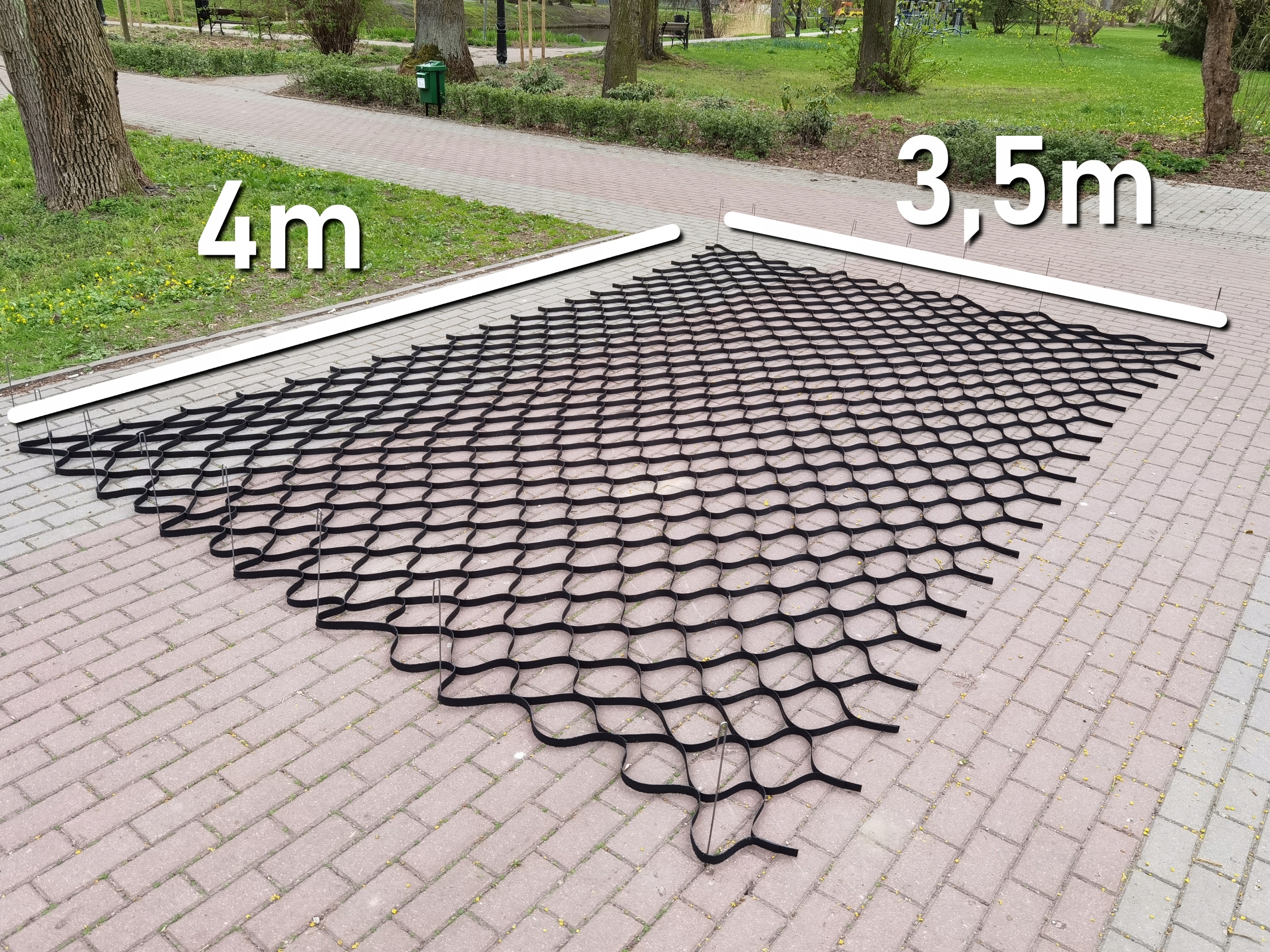 Oferta dotyczy geosiatki komórkowej atestowanej 25MK o wymiarach 4m x 3,5m i wysokosci 2,5cm.