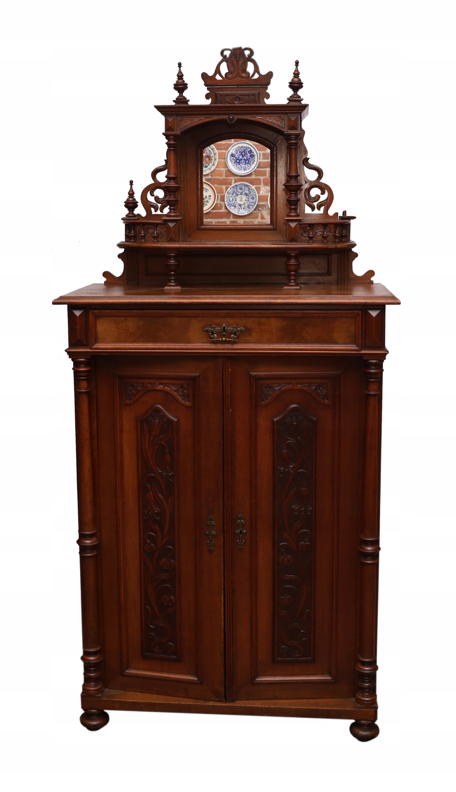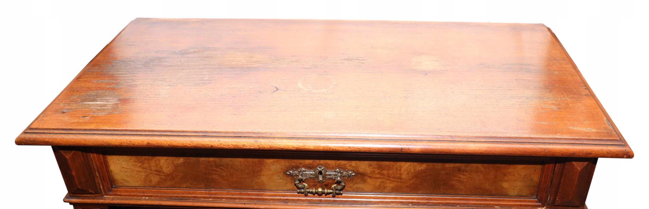 Zabytkowa eklektyczna bieliźniarka z k. XIX w. Ślady użytkowania, do renowacji. Brak jednego zamka i klucza. Ogólnie dobry stan. Mebel do tej pory użytkowany w warunkach domowych, Wymiary: wys. 207 (bez nadstawki 134) x 97 x 49 cm. Polecam kolekcjonerom