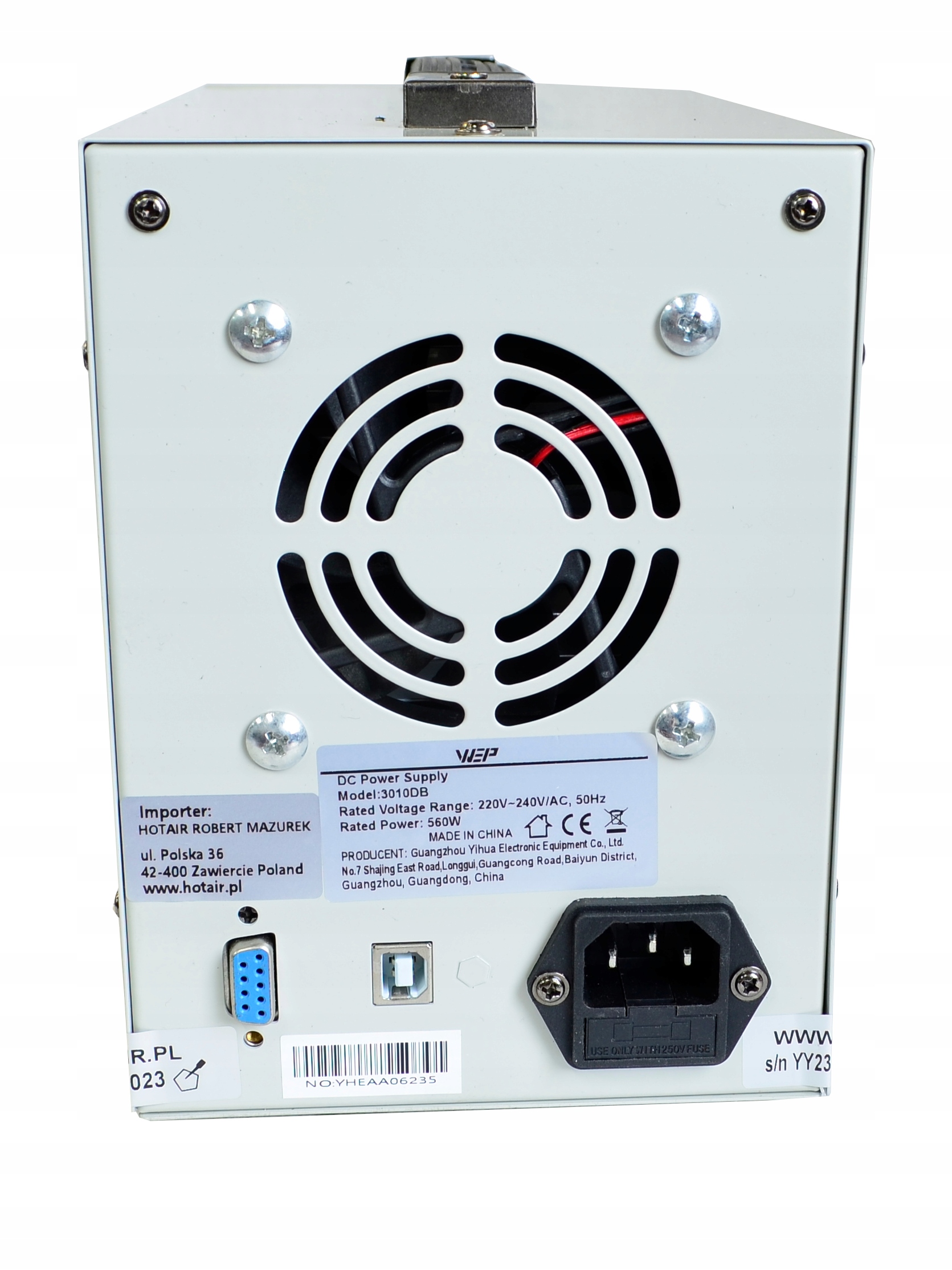 Stabilizowany zasilacz serwisowy z płynną regulacją napięcia w zakresie od 0V do 30V oraz prądu w zakresie od 0V do 10 A. Posiada wyjście główne oraz 2 wyjścia dodatkowe. Wyjście zasilacza może być uruchomione po ustawieniu parametrów za pomocą przycisku wyjścia, posiada zabezpieczenie przeciwprzepięciowe i przeciw przeciążeniowe, może pracować jaki źródło prądowe, tego nie mają inne zasilacze. Zasilacz wyróżnia się wyświetlaczem LED który pokazuje napięcie, natężenie, dokładność wskazań natężenia do 3 miejsc po przecinku. Zasilacz może być sterowany za pomocą oprogramowania na PC