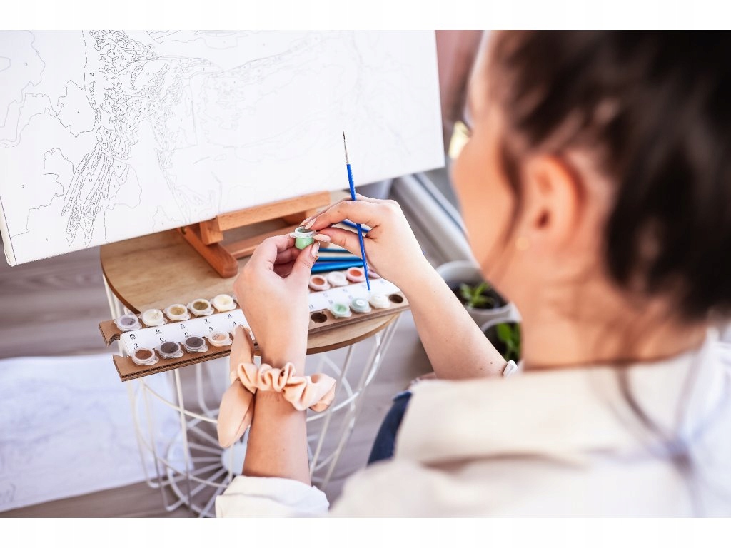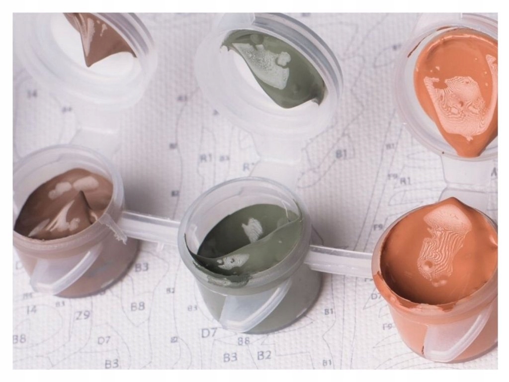 Wyraźne kontury pól, pola oznaczone numerami zgodnie z odpowiednimi kolorami akrylu, umożliwiają dokładne odwzorowanie obrazu. Pomaluj farbą także boki obrazu, aby nadać mu nowoczesny, trójwymiarowy wygląd.