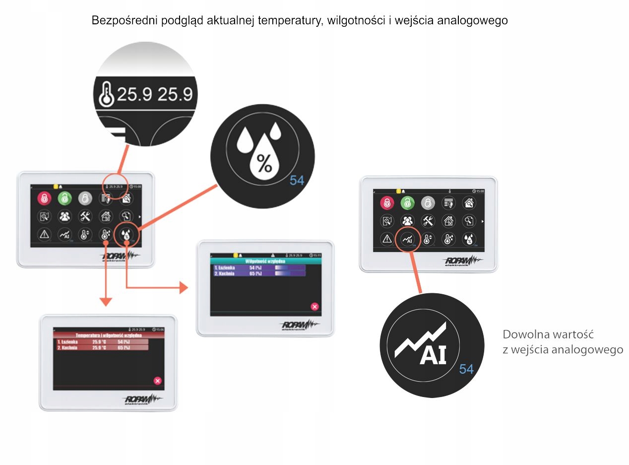 - magistrala EIA-485 do komunikacji z centralami, protokół RopamNET,