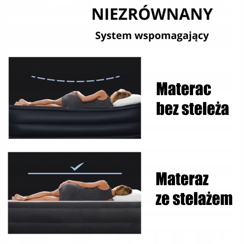 Wygodny i wspierający: Materac dmuchany z wielowarstwowym, miękkim flokowaniem wytrzymuje do 227 kg i zapewnia komfort. Zaawansowany system zapobiega wgnieceniom, co zapewnia komfort snu dla rodziny lub przyjaciół.