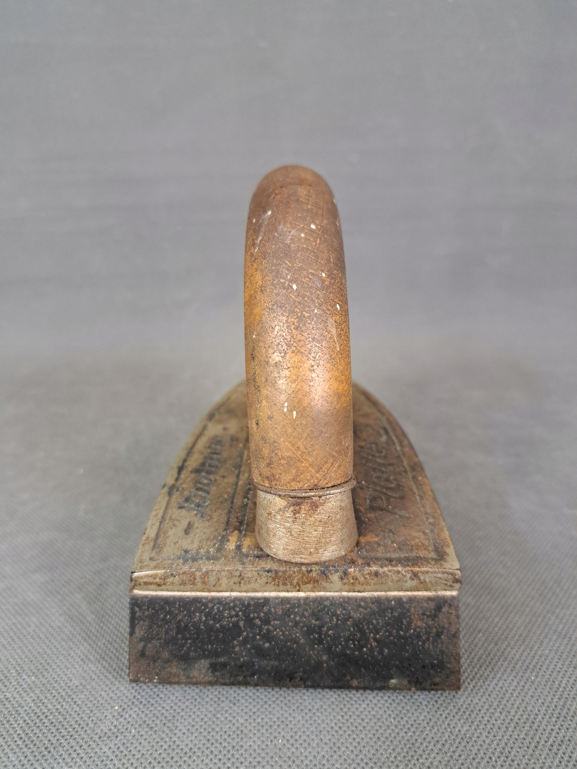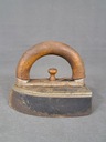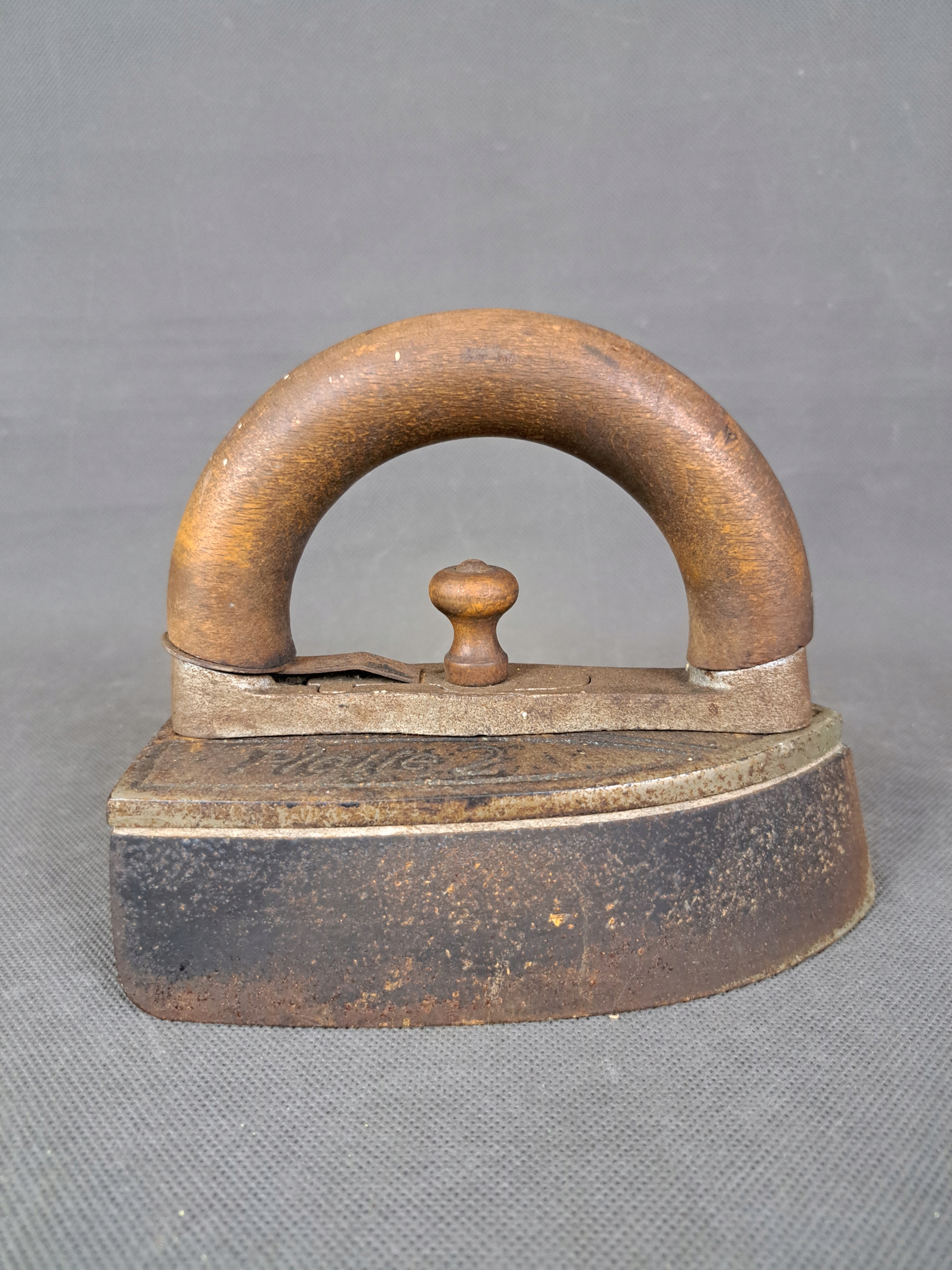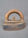 Stare, masywne żelazko żeliwne z dodatkowym, wymiennym dołem.
