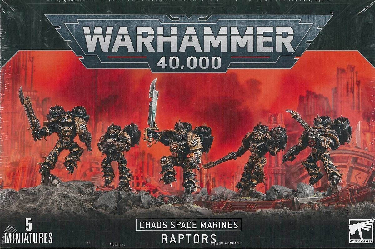 Figurki Chaos Space Marine Raptors występują w różnych dynamicznych pozach. Są rzeźbione w pozycji siedzącej lub startującej z gruzów pola bitwy na swoich podstawkach. Na wszystkich modelach ich zbroja z metalowymi krawędziami pokazuje wszystkie zniekształcające efekty Warp: kratki wyłaniają się z naramienników; kable wystają z pancerza; zęby wystają z różnych powierzchni wokół krawędzi plecaków odrzutowych. Noszą pistolety boltowe i okrutne miecze łańcuchowe.