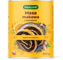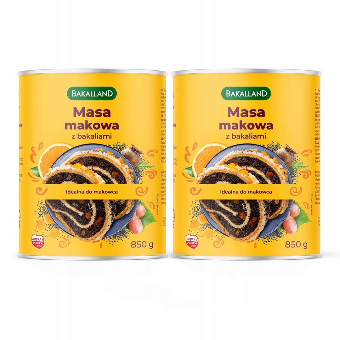 Masa makowa z bakaliami Bakalland to gotowa do spożycia masa do ciast i dań. Jest to produkt drobnoziarnisty z widocznymi bakaliami o brunatnym kolorze. Ma zwartą i delikatnie wilgotną konsystencję, która została uzyskana poprzez dwukrotny proces mielenia maku. Dzięki tej masie proces pieczenia ciast stanie się szybszy i prostszy. Wykorzystasz ją do przygotowania różnego rodzaju makowców, drożdżówek, rogalików czy innych deserów, a także do przyrządzenia wigilijnej kutii. Masa makowa z bakaliami jest zapakowana w metalową puszkę o gramaturze 850 gramów i zachowuje długi 36 miesięczny termin ważności. Jednak pamiętaj, że po otwarciu produktu najlepiej spożyć go w ciągu 48 godzin i przechowywać w lodówce.