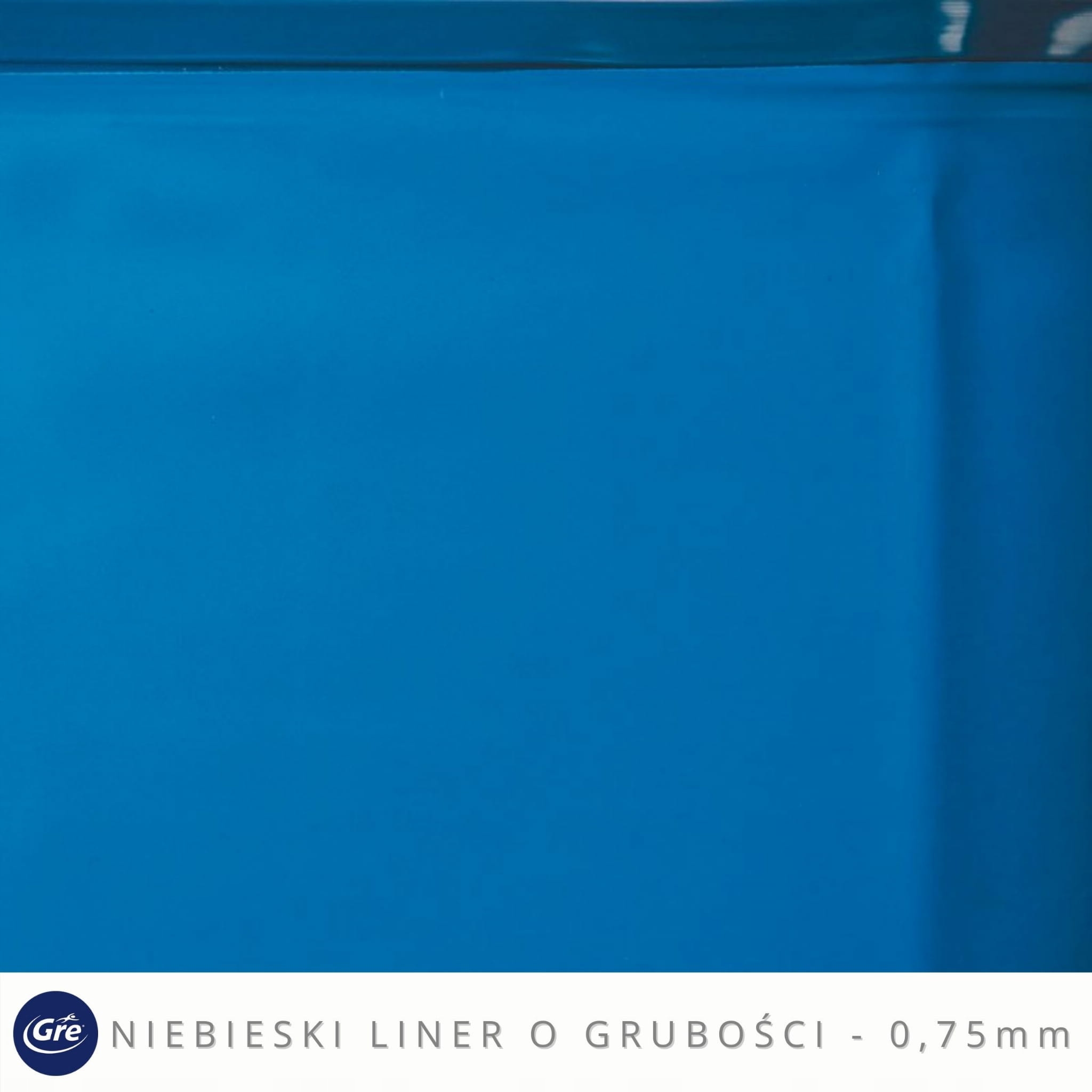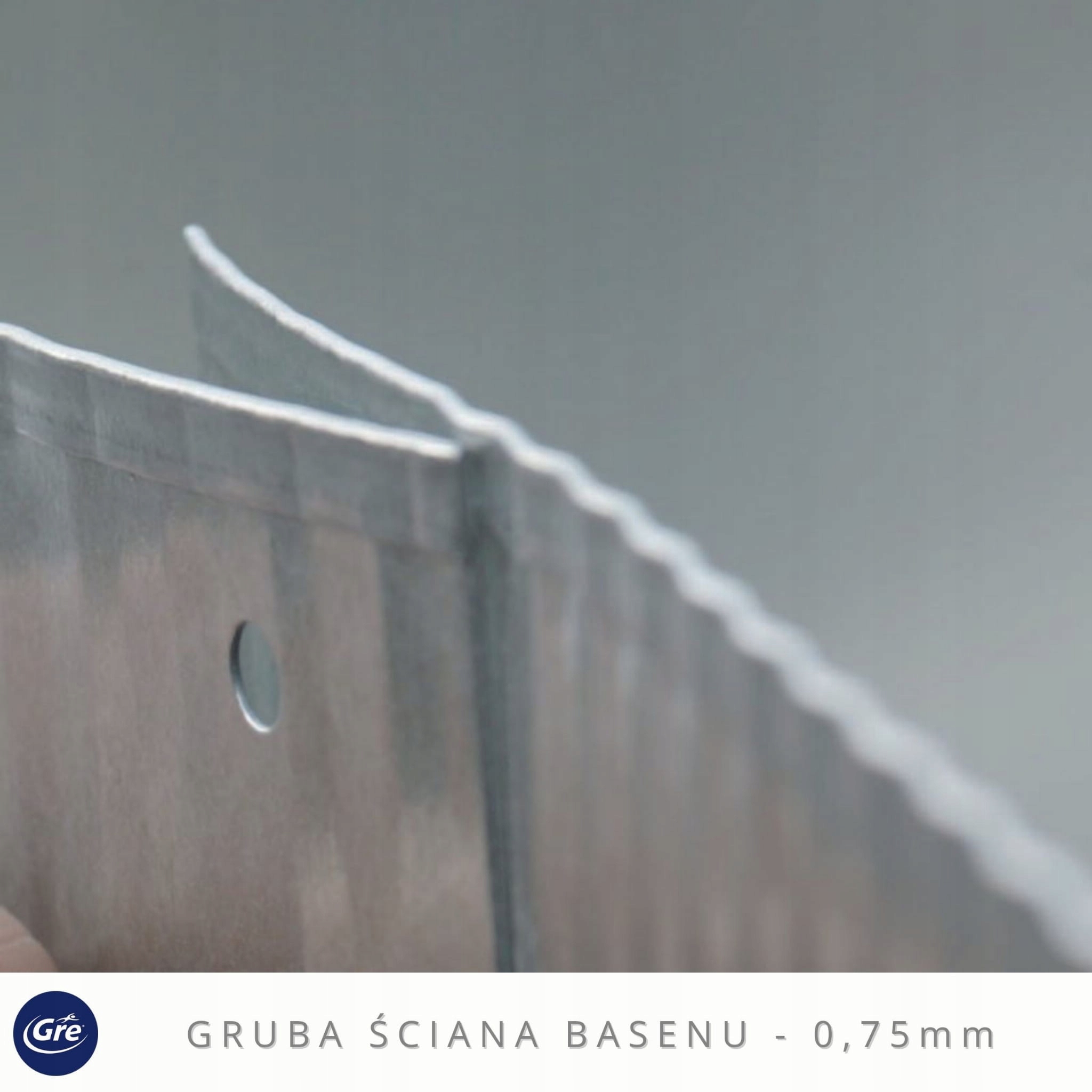 Ściany basenu wykonane są z walcowanej na zimno, fosforyzowanej oraz galwanizowanej blachy. Dno oraz boki wyłożone są odporną na promieniowanie ultrafioletowe folią PCV o grubości 0,75 mm, w postaci gotowego wkładu do zamontowania wewnątrz basenu.