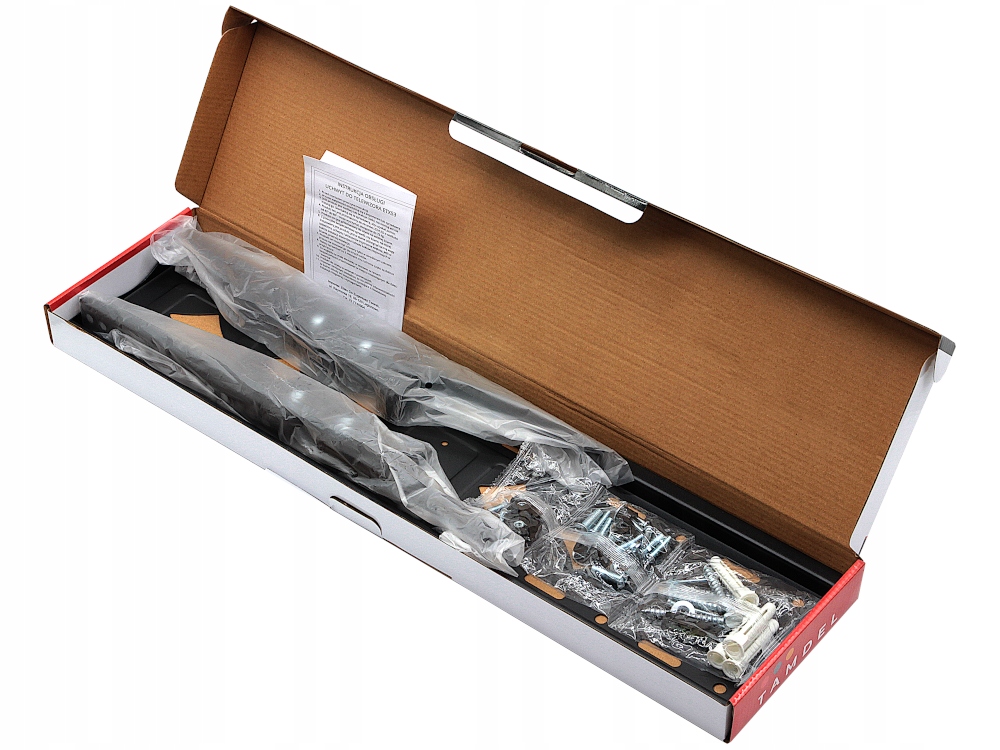 Montaż uchwytu do telewizora jest stosunkowo prosty i można go wykonać samodzielnie. Z narzędzi potrzebna będzie wiertarka i śrubokręt. W zestawie z uchwytem znajdują akcesoria montażowe oraz instrukcja obsługi.
